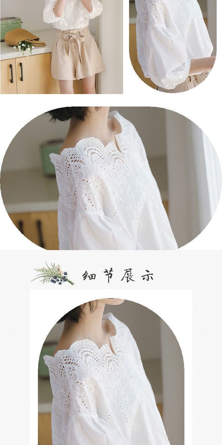 화이트 셔츠 여성 여름 반팔 오프 숄더 학생의 한국 느슨한 오프 숄더 톱 셔츠 여성 디자인 센스 니쉬