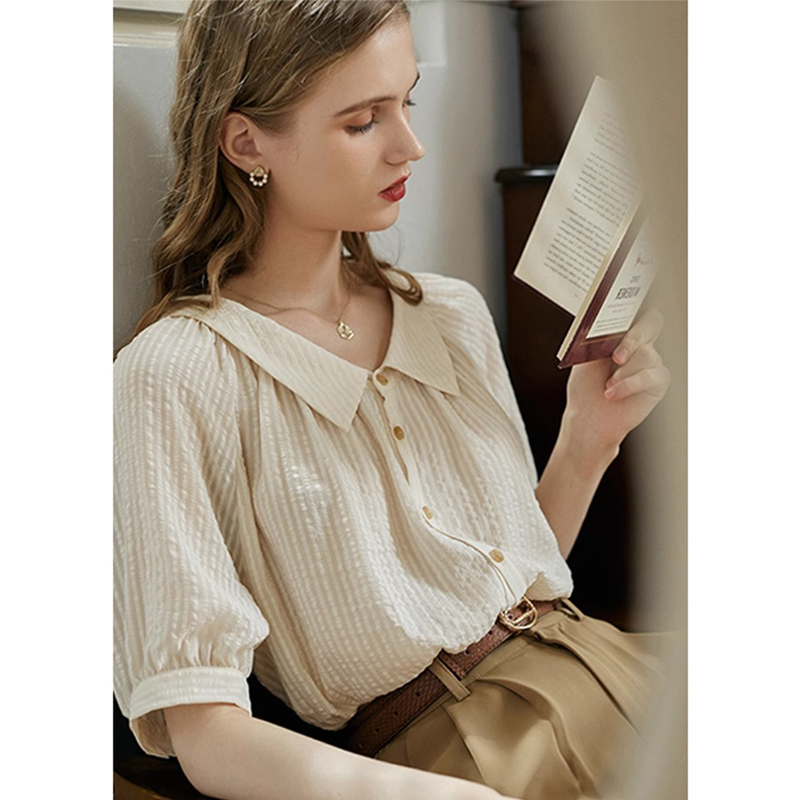 프랑스 레트로 질감 버블 짧은 소매 셔츠 여성의 여름 새로운 우아한 얇은 셔츠 세련된 쉬폰 탑스토어 가기