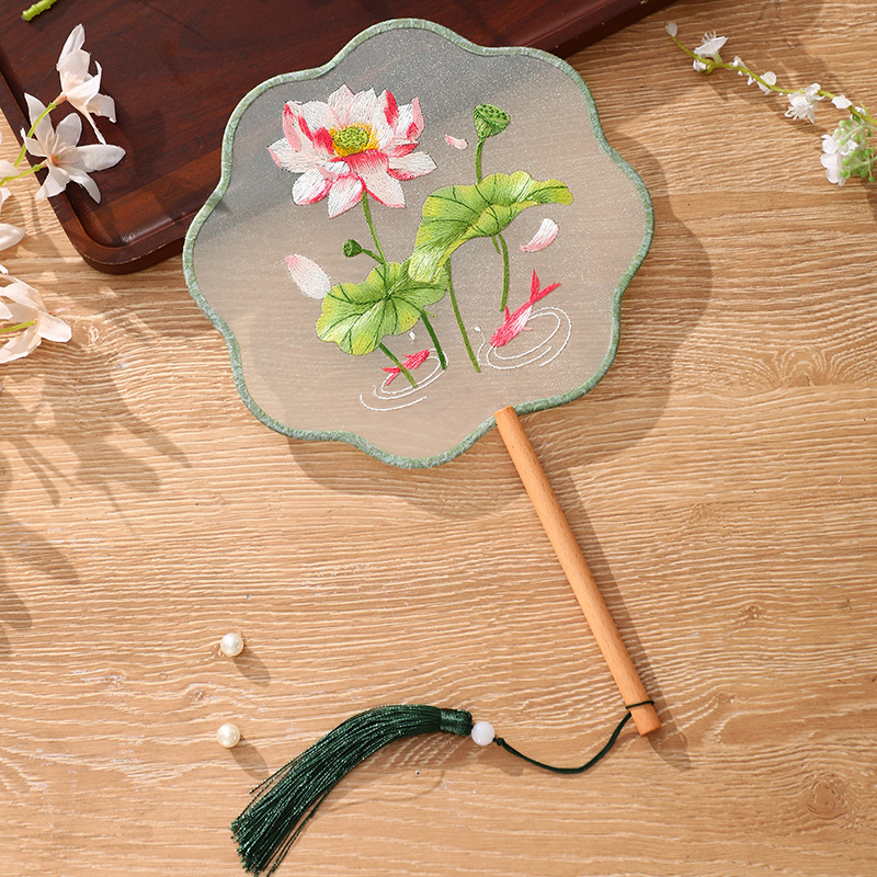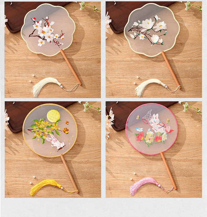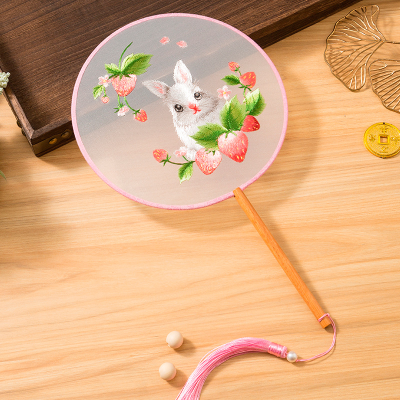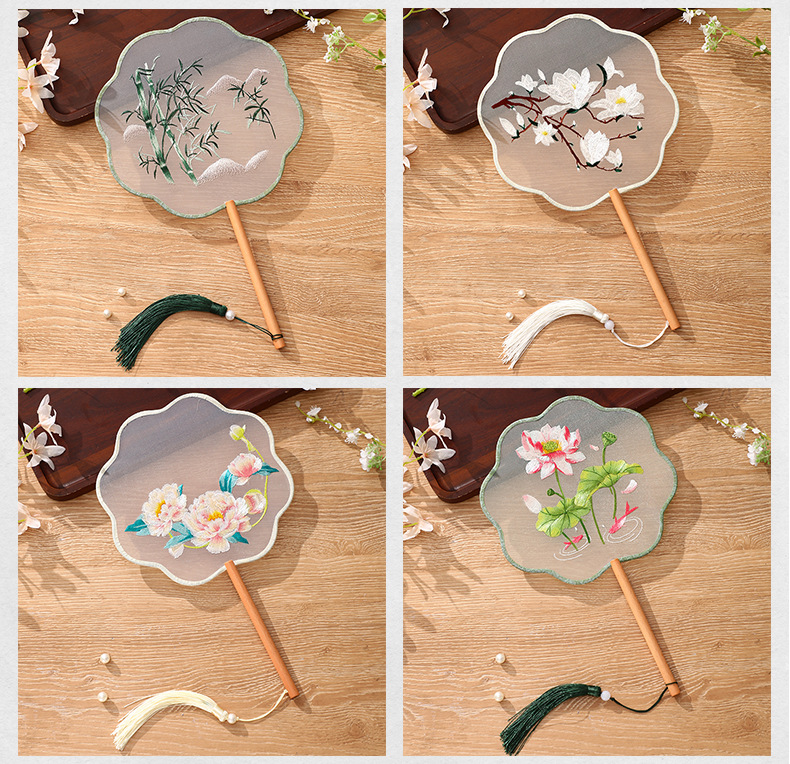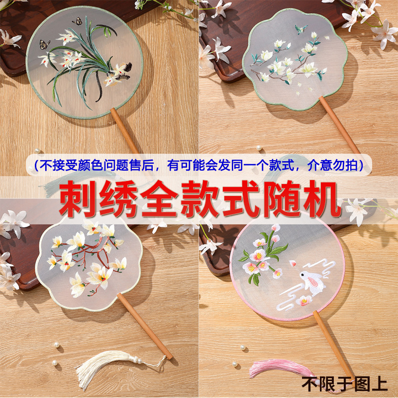 자수 라운드 팬 골동품 댄스 팬 중국 스타일 한푸 치삼 양면 쑤저우 자수 어린이 댄스 라운드 팬 스페셜스토어 가기
