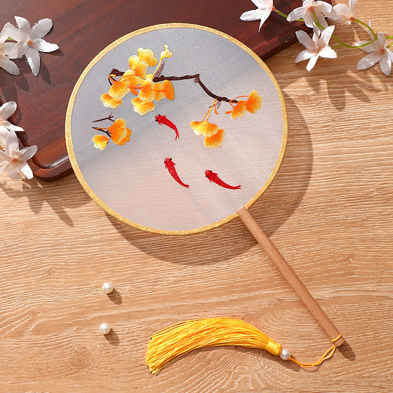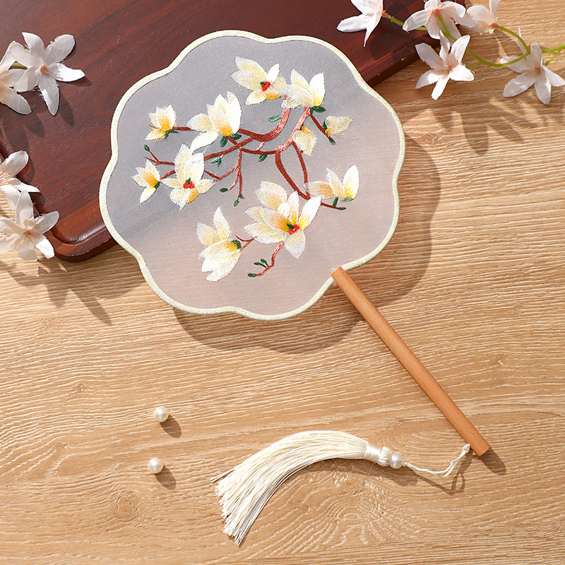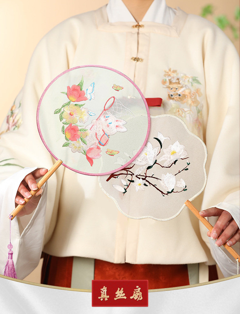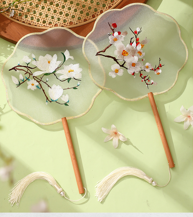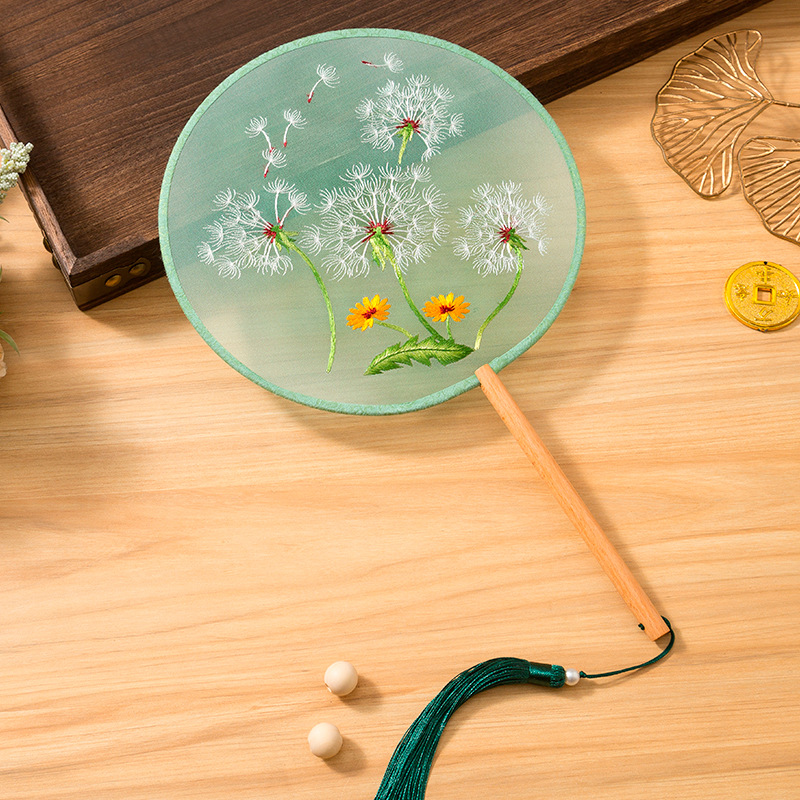 자수 라운드 팬 골동품 댄스 팬 중국 스타일 한푸 치삼 양면 쑤저우 자수 어린이 댄스 라운드 팬 스페셜스토어 가기