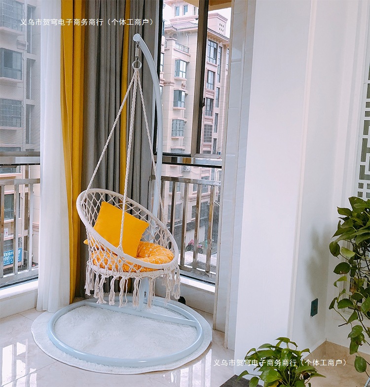 Ins Nordic Style 인터넷 연예인 교수형 바구니 야외 수제 코튼 로프 교수형 의자 발코니 로킹 의자 실내 홈스테이 술 스윙스토어 가기