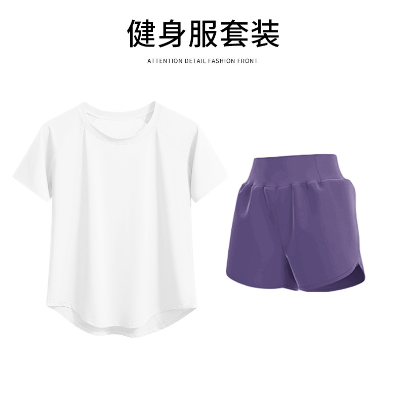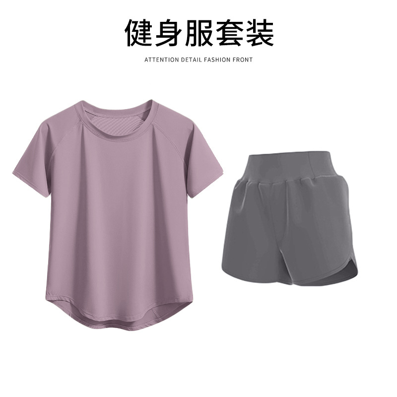 • Ningye 보라색 반팔 + 바다 바위 회색 반바지