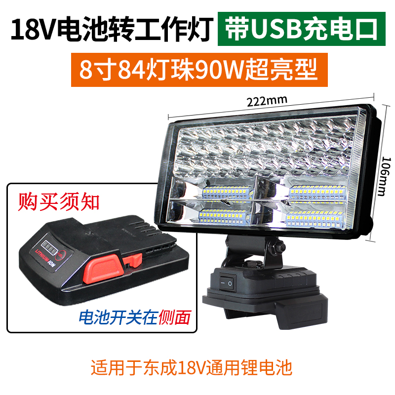 • 18V 버전 8인치 84 램프 비드 작업등(USB 충전 포트 포함)