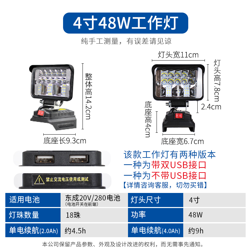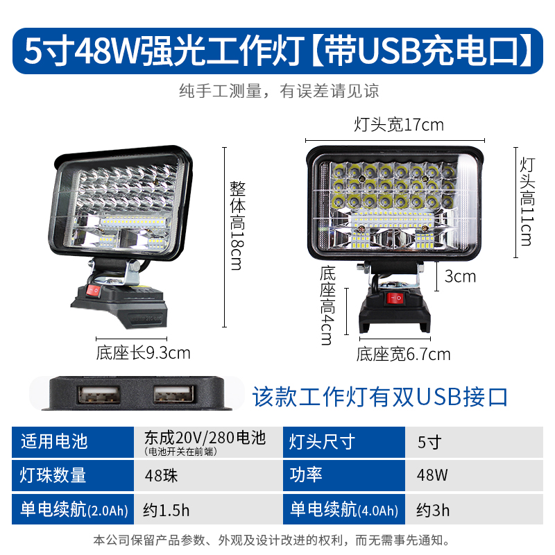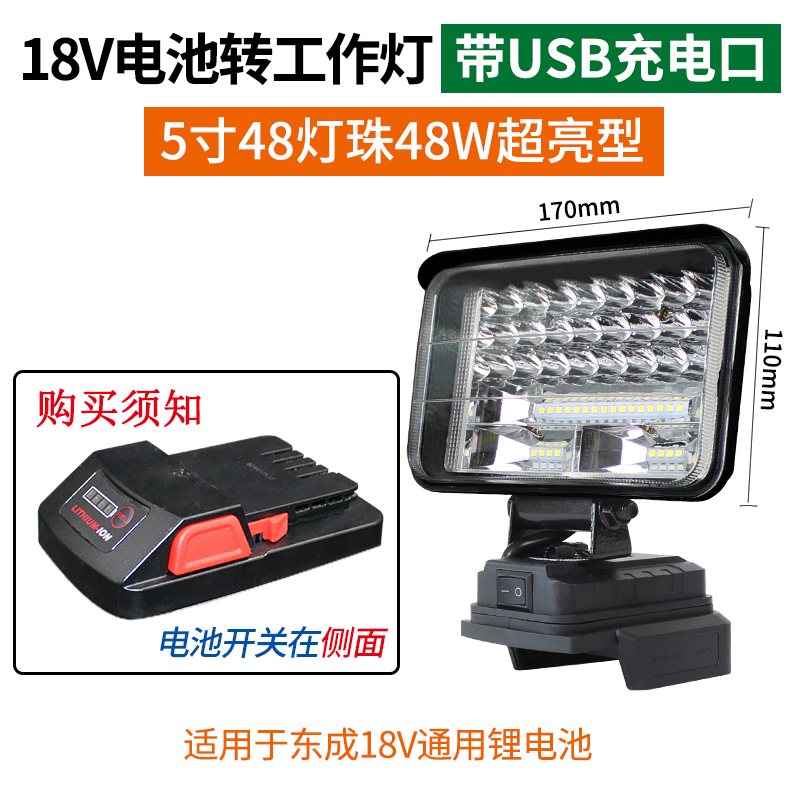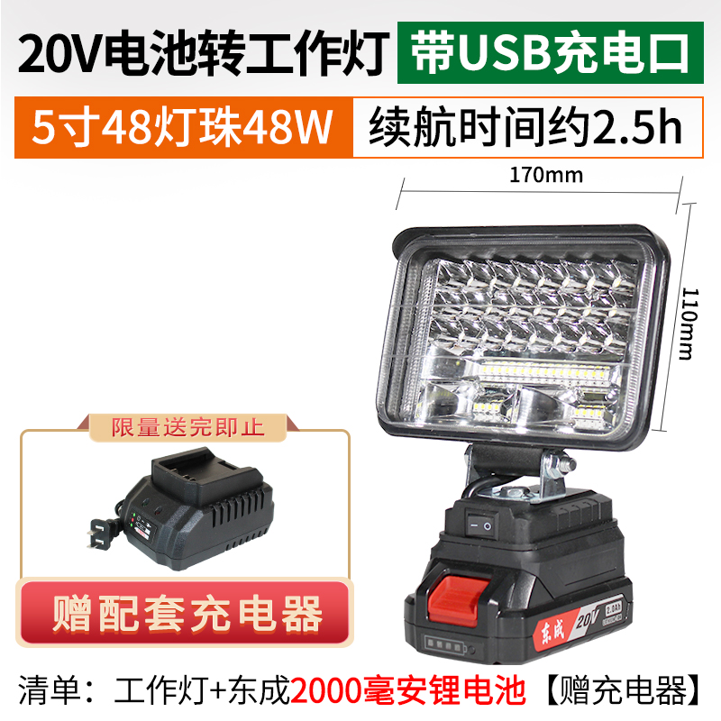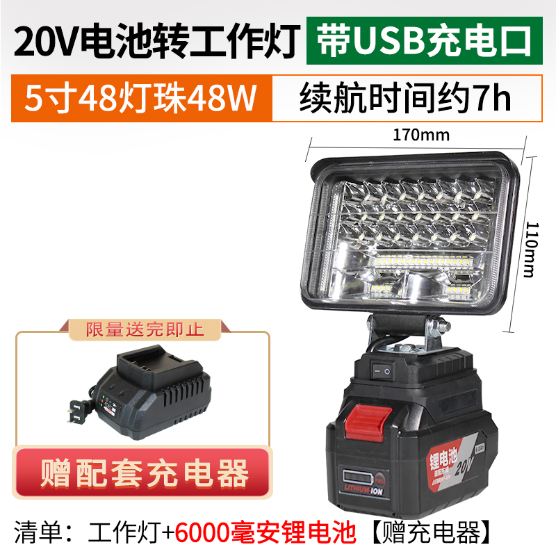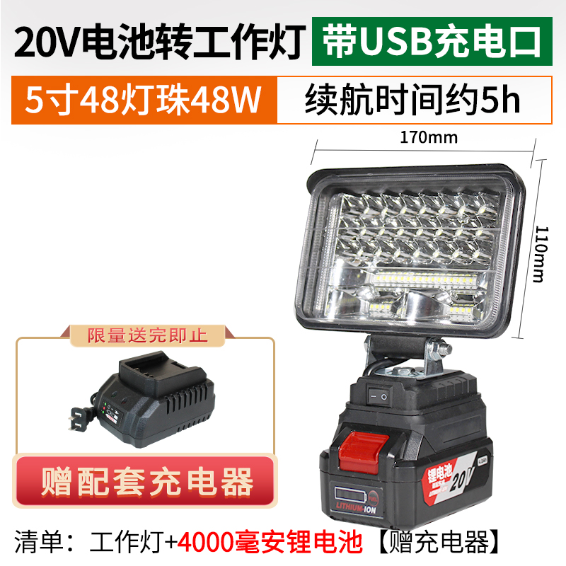 • 20V 버전 5인치 48 램프 비드 작업등(USB 충전 포트 포함)