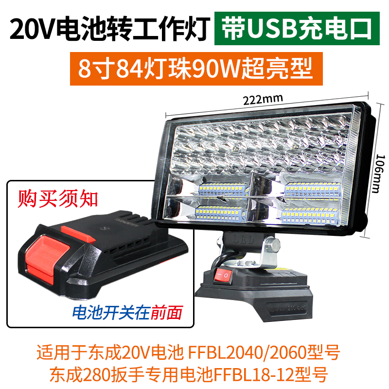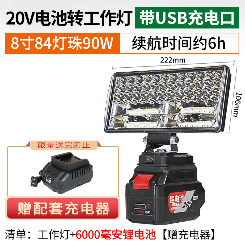 • 20V 버전 8인치 84 램프 비드 작업등(USB 충전 포트 포함)