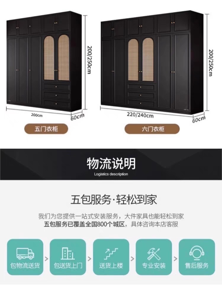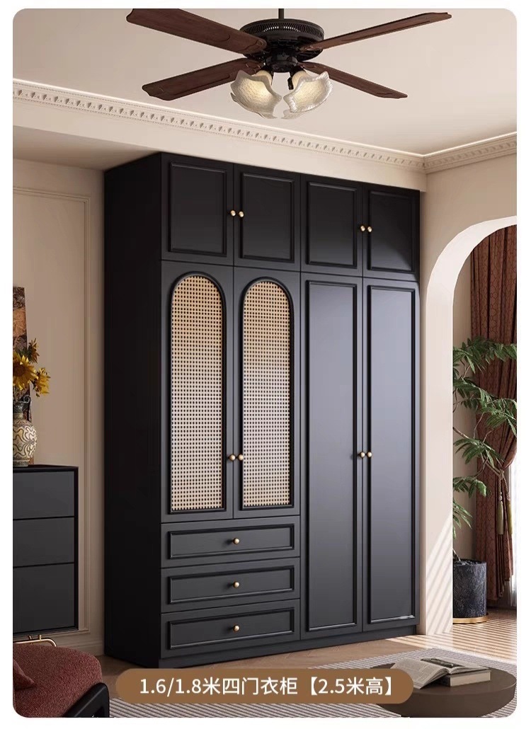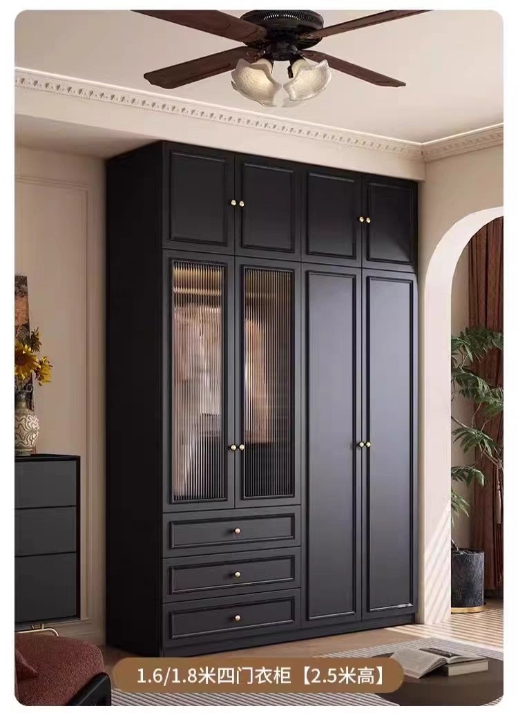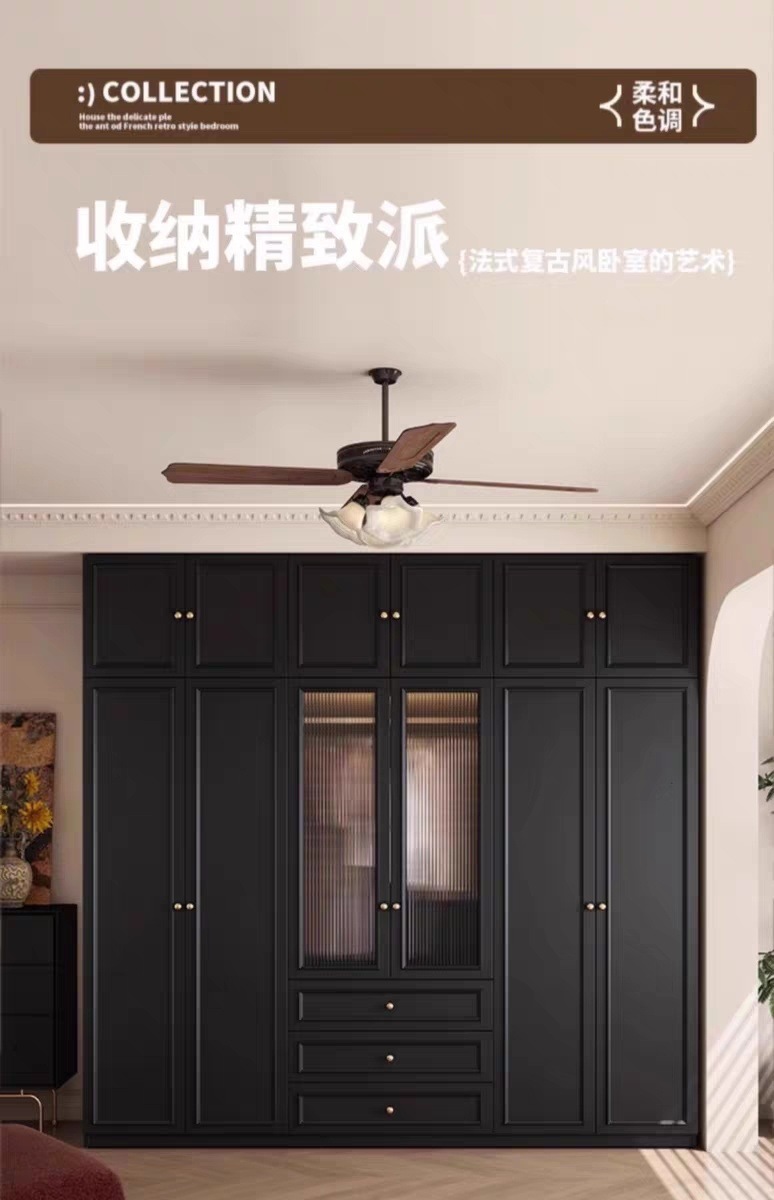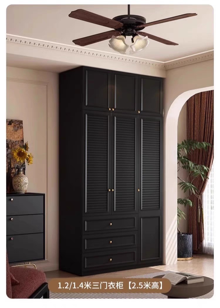 앤티크 스타일 블랙 옷장 홈 침실 작은 아파트 다크 스타일 미국 클래식 복고풍 완성 된 프랑스 스타일 옷장