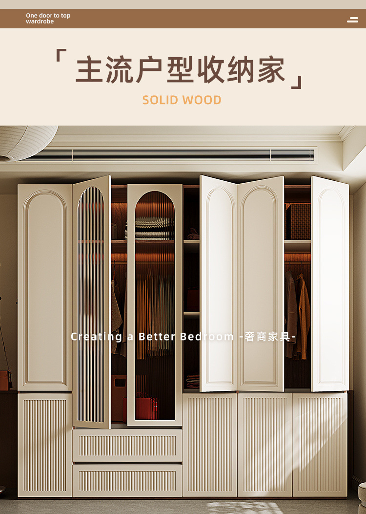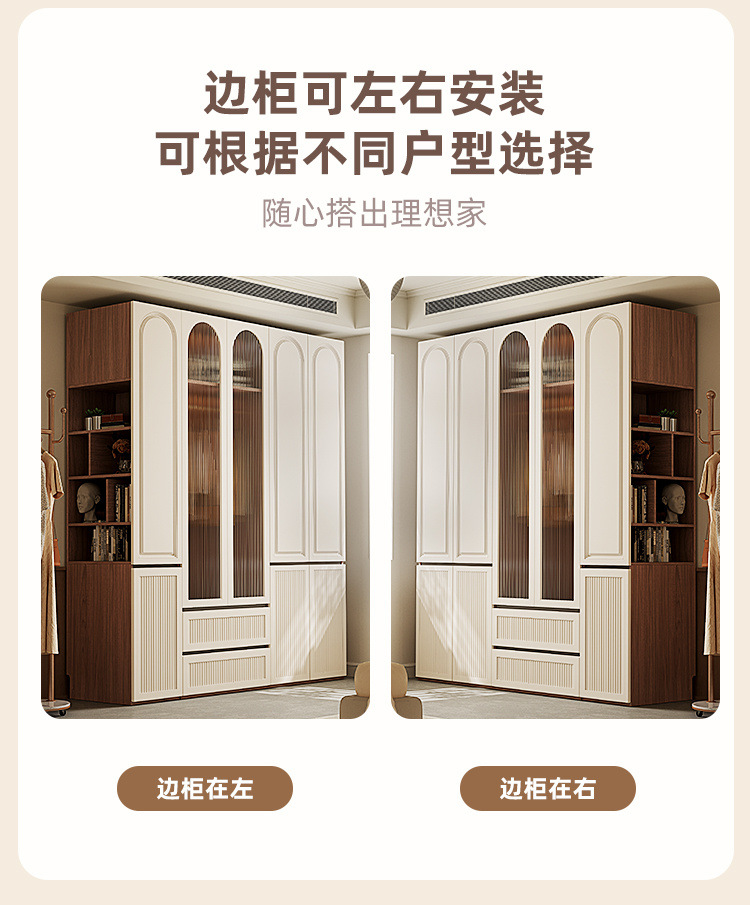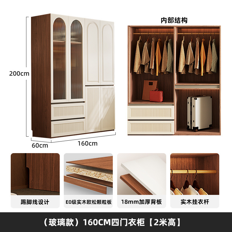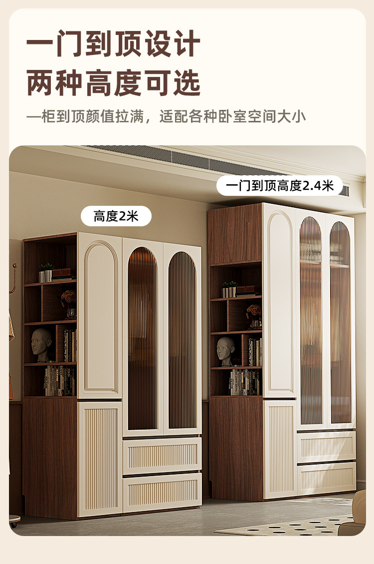 옷장 세그먼트 도어 투 탑 핸즈리스 중간 스타일 침실 보관 캐비닛 가정용 보관 옷장스토어 가기