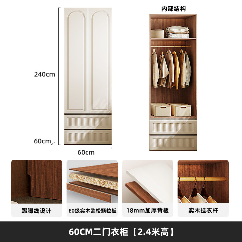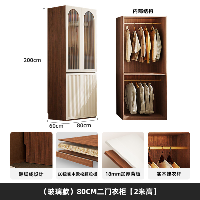 옷장 세그먼트 도어 투 탑 핸즈리스 중간 스타일 침실 보관 캐비닛 가정용 보관 옷장