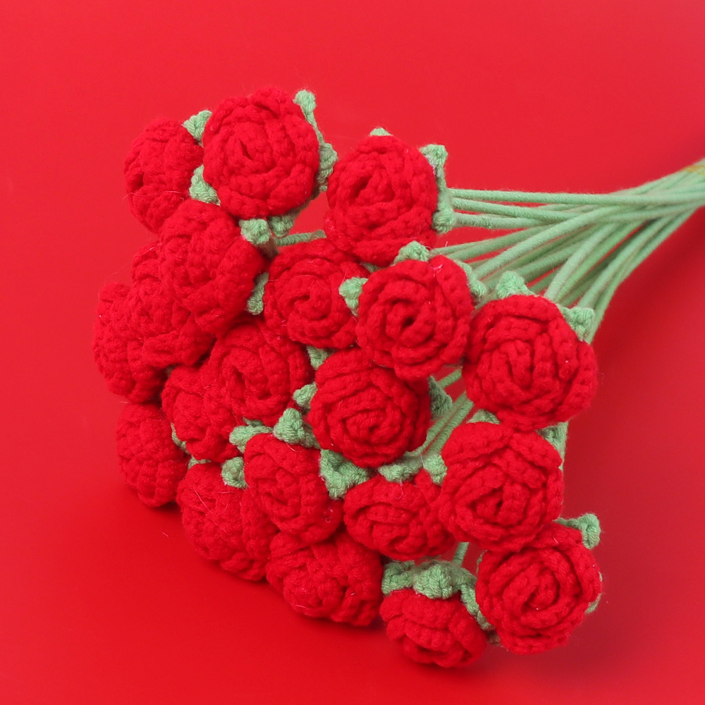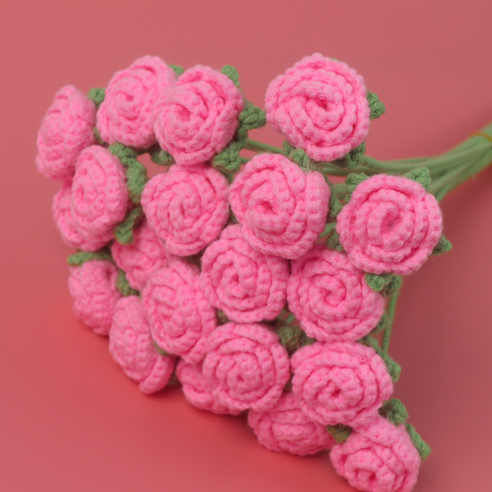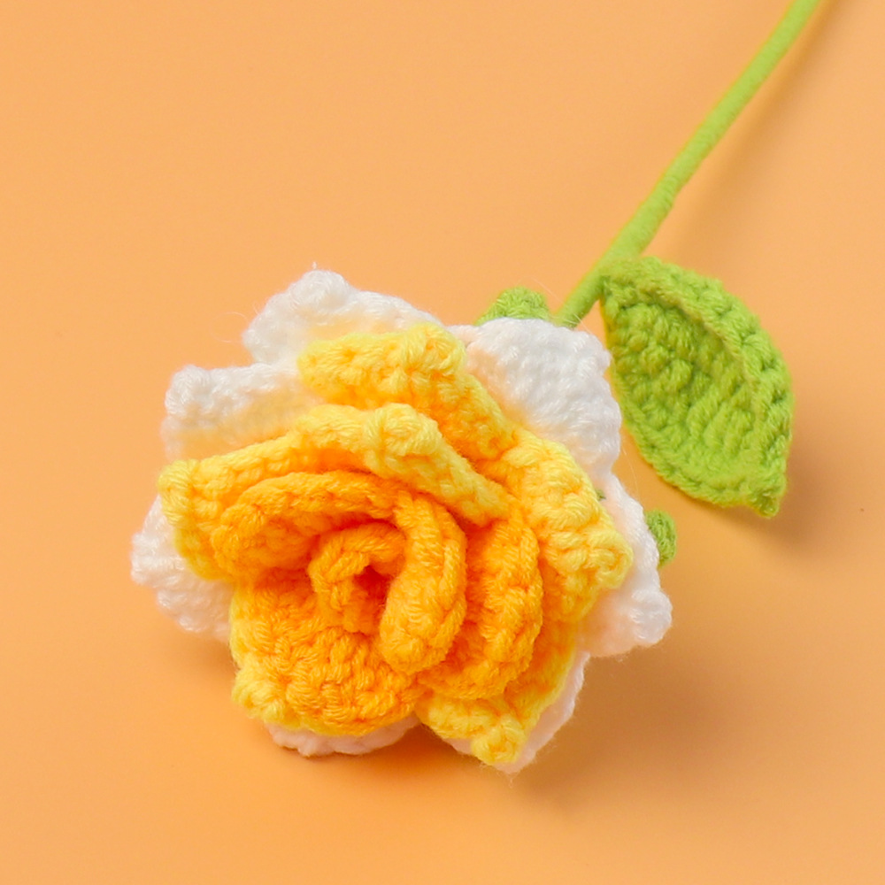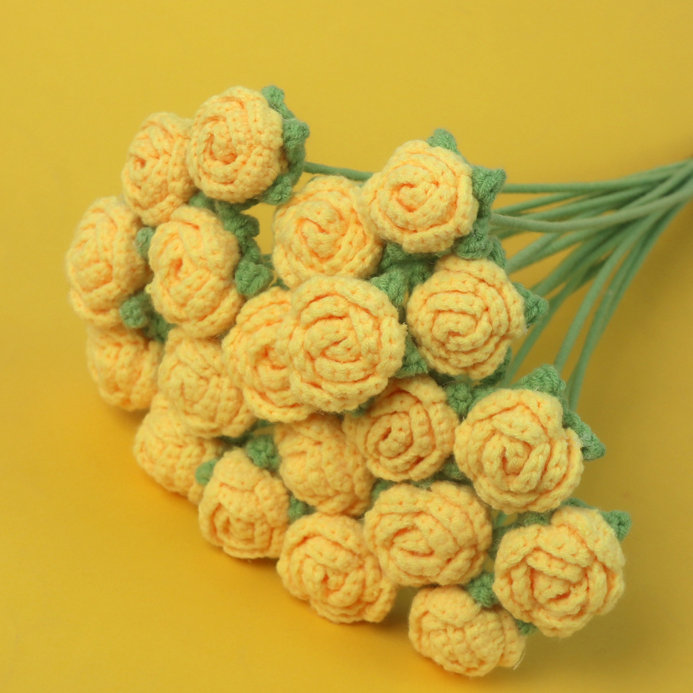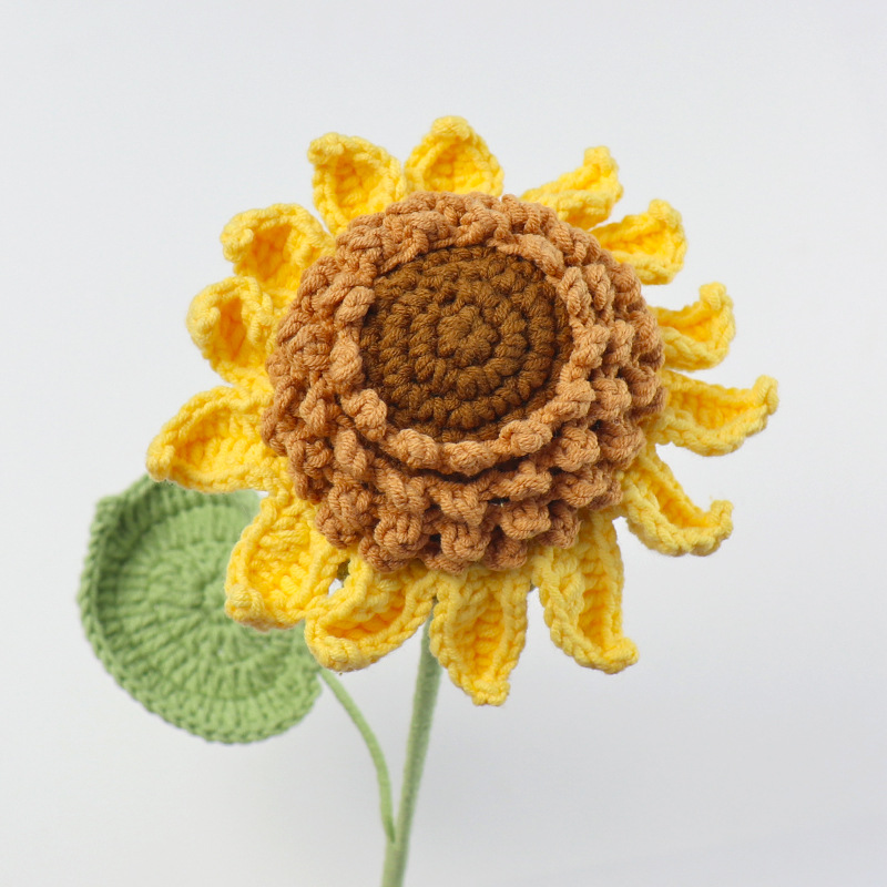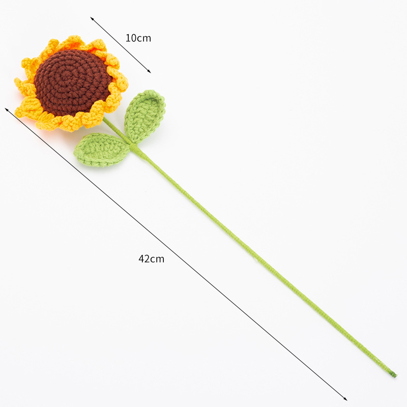 완성 된 국경 짠 해바라기 꽃 수제 양모 니트 해바라기 튤립 꽃 장미 선물