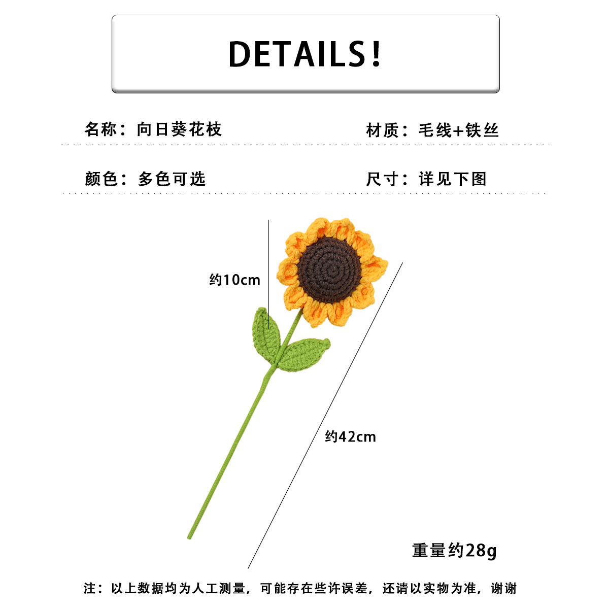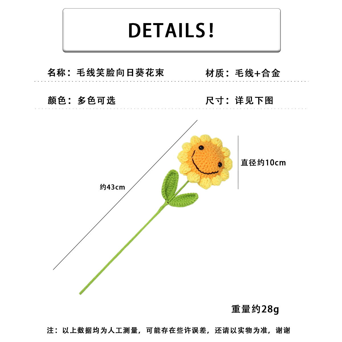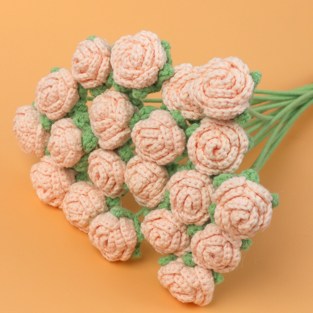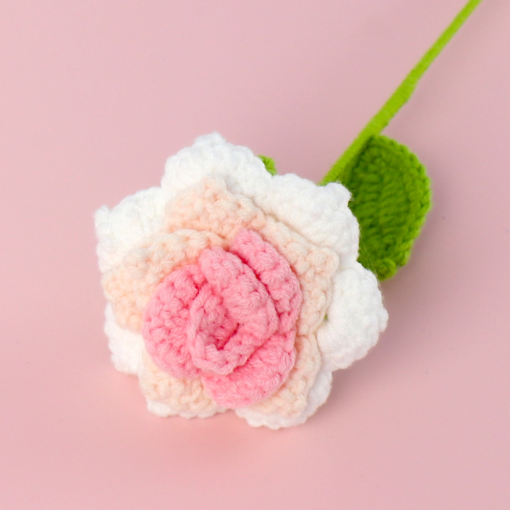 완성 된 국경 짠 해바라기 꽃 수제 양모 니트 해바라기 튤립 꽃 장미 선물