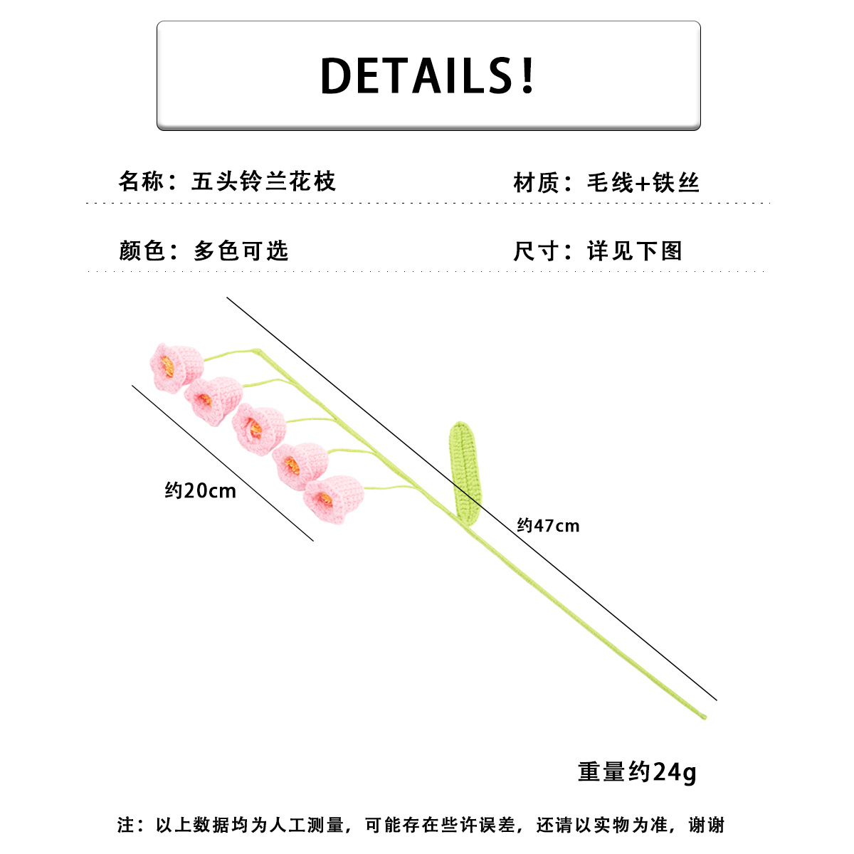 • 완제품 - 은방울꽃 가지 4개 - 핑크