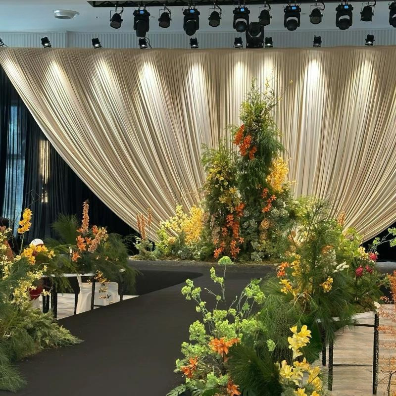 샴페인 우유 실크 탄성 천 웨딩 커튼 배경 천 천장 웨딩 홀 무대 상단 장식 천