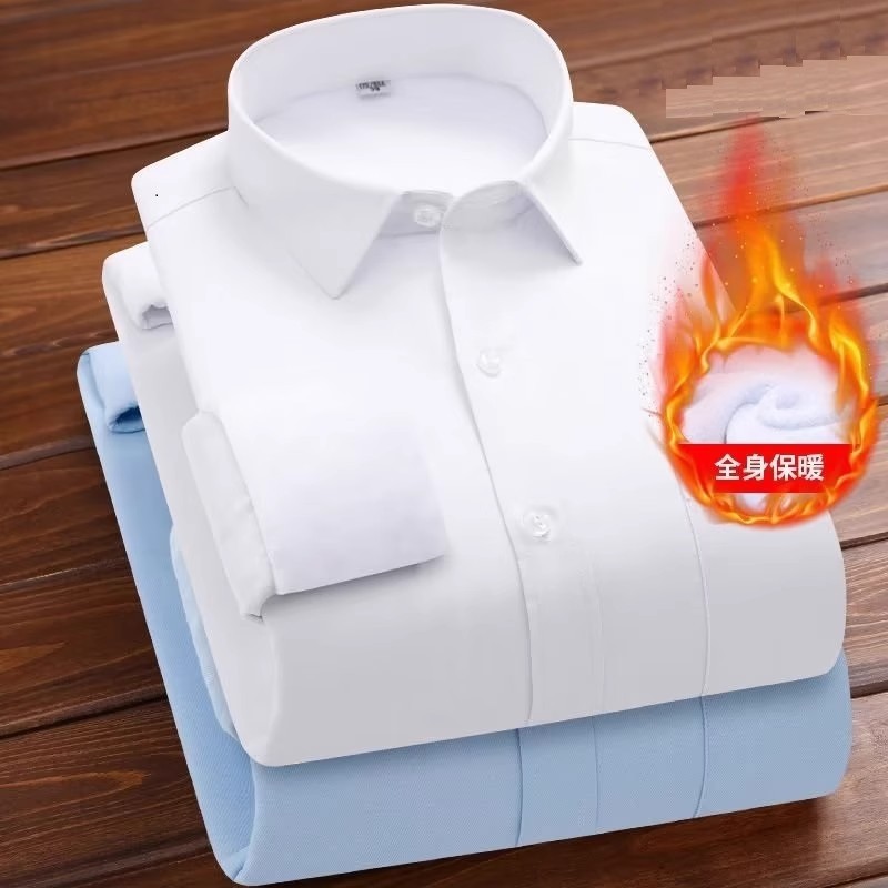 겨울 기모 두꺼운 흰색 셔츠 남성용 긴팔 비즈니스 전문 인치 원피스 다림질 따뜻한 포켓 셔츠