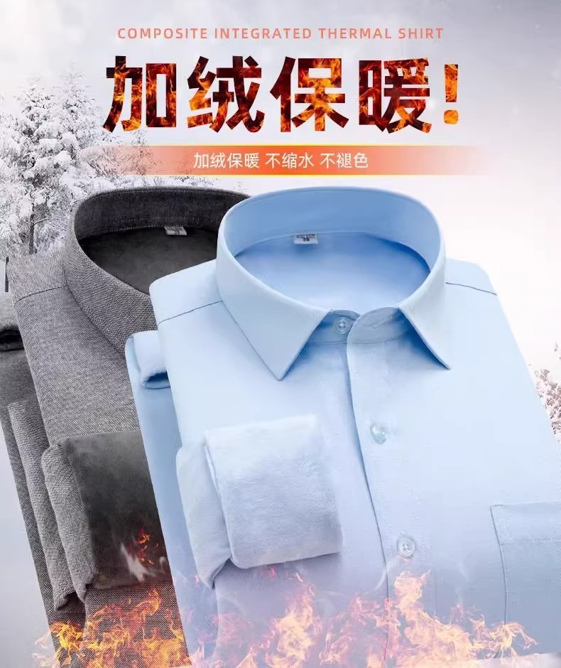 겨울 기모 두꺼운 흰색 셔츠 남성용 긴팔 비즈니스 전문 인치 원피스 다림질 따뜻한 포켓 셔츠스토어 가기