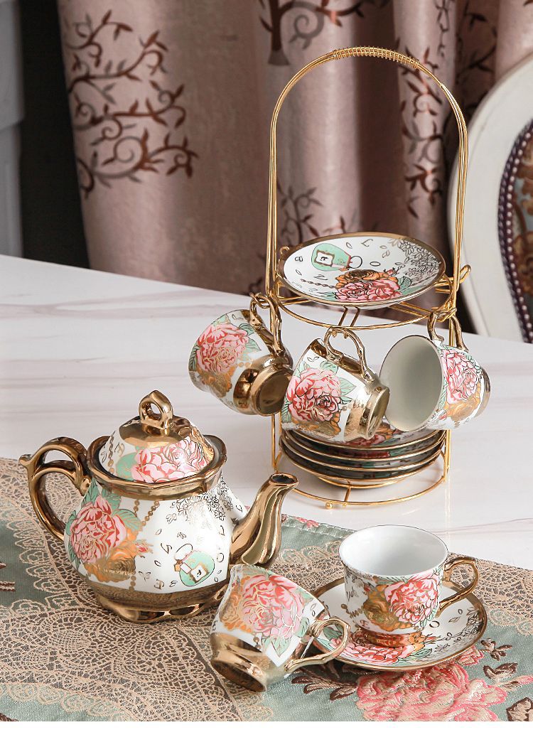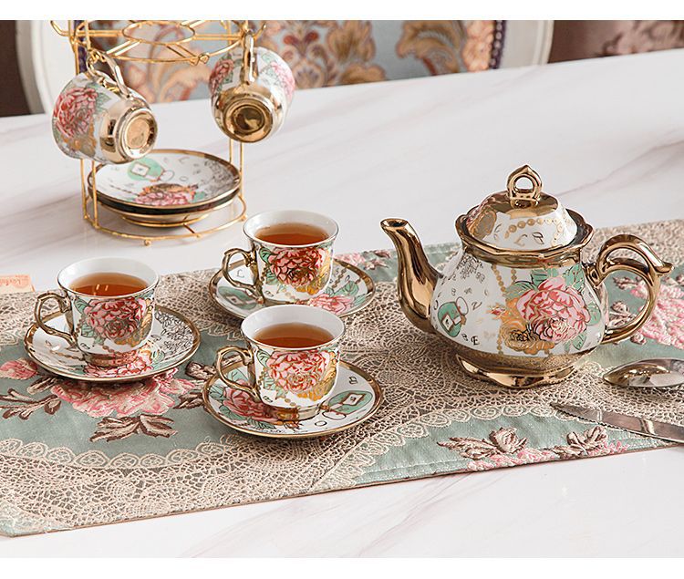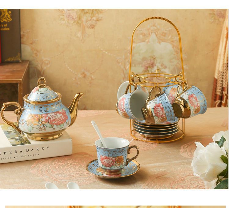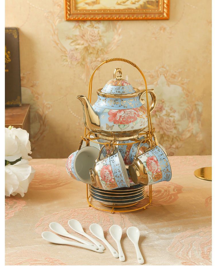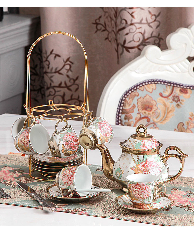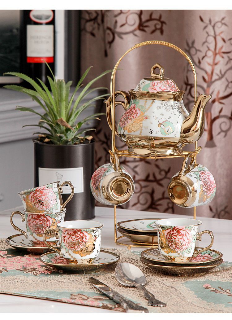 20 조각 유럽 스타일 차 세트 세라믹 커피 컵 향기 차 영어 스타일 애프터눈 티 세트 세트 빈티지 웨딩 선물스토어 가기