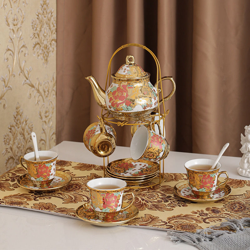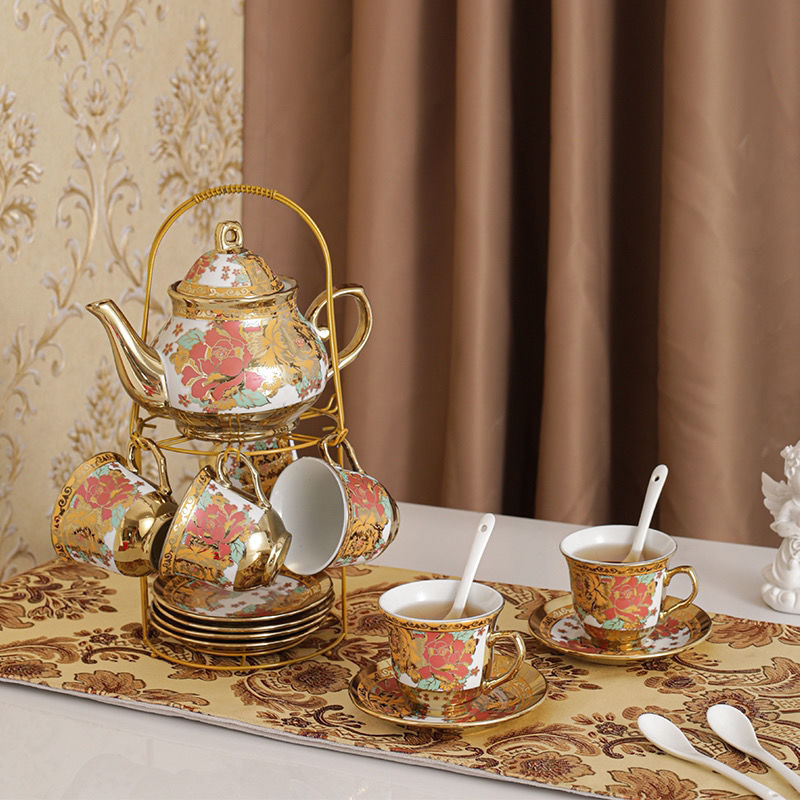 20 조각 유럽 스타일 차 세트 세라믹 커피 컵 향기 차 영어 스타일 애프터눈 티 세트 세트 빈티지 웨딩 선물