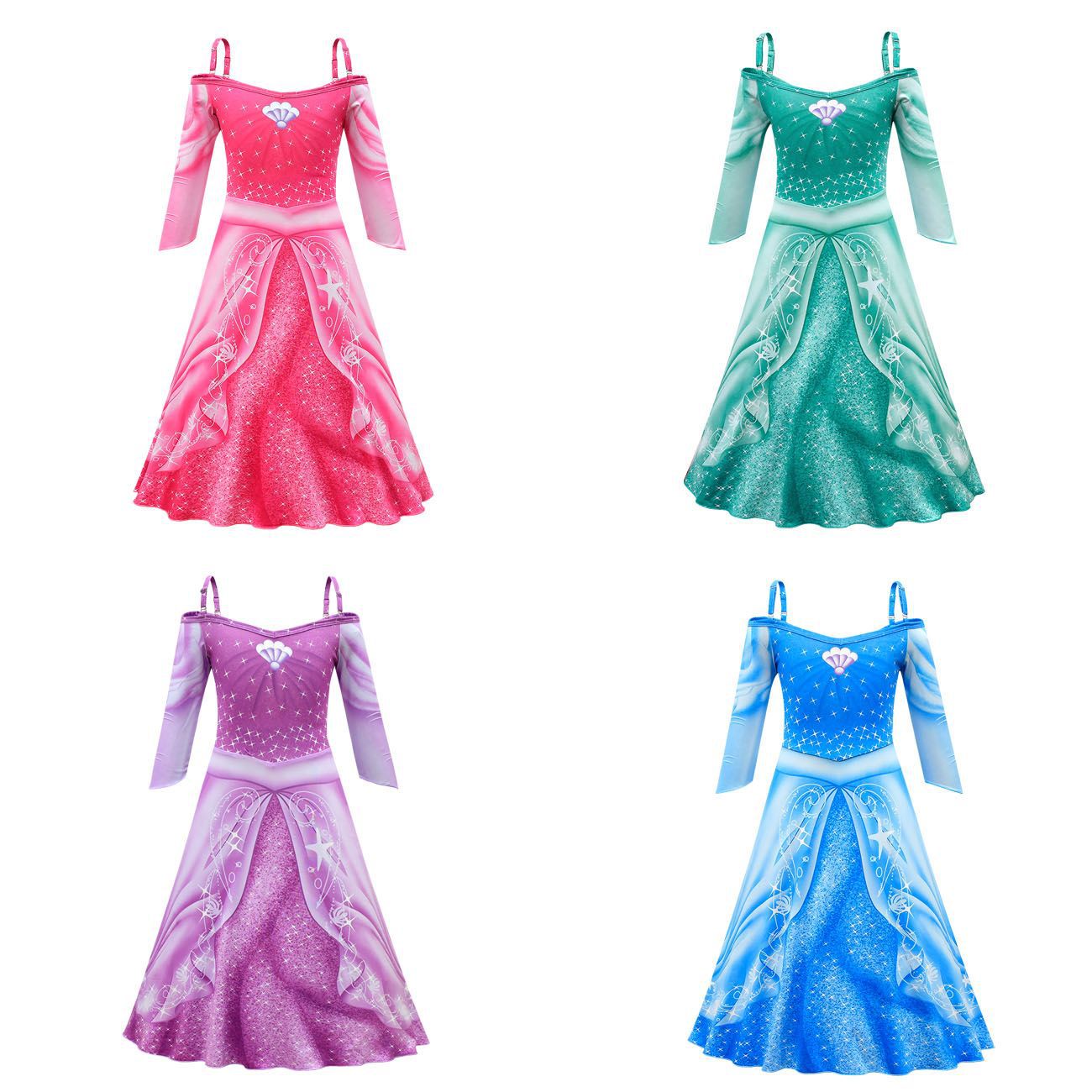 소녀의 할로윈 원피스 아리엘 공주 코스프레 의상 어린이 원피스 공주 긴 원피스 슬립 원피스 80564