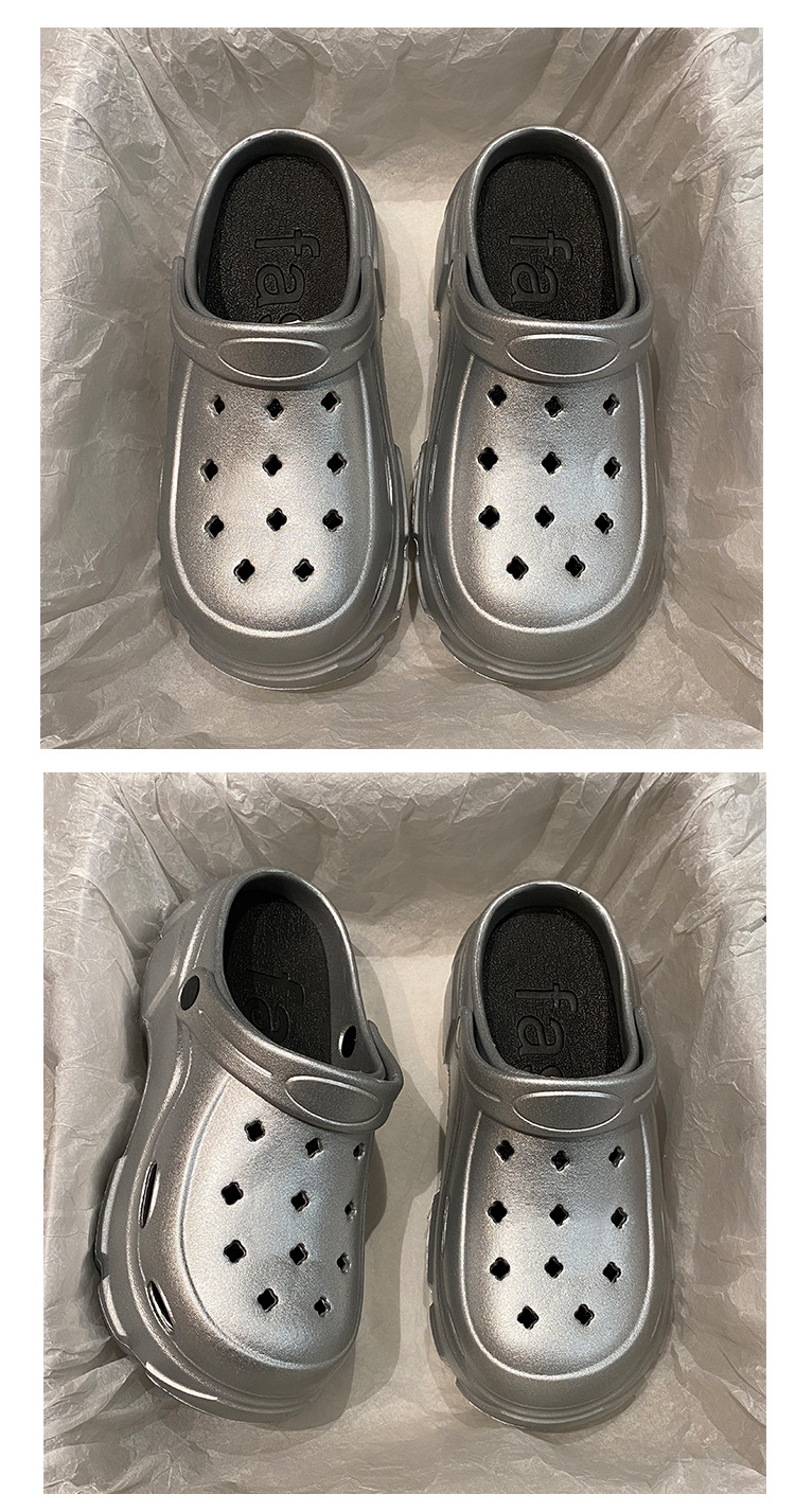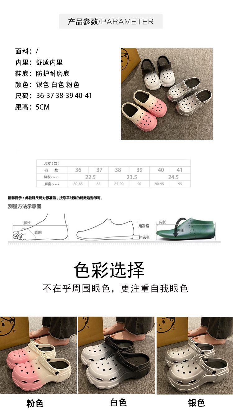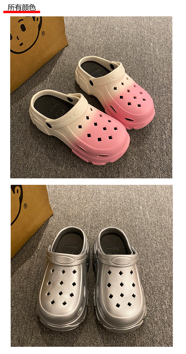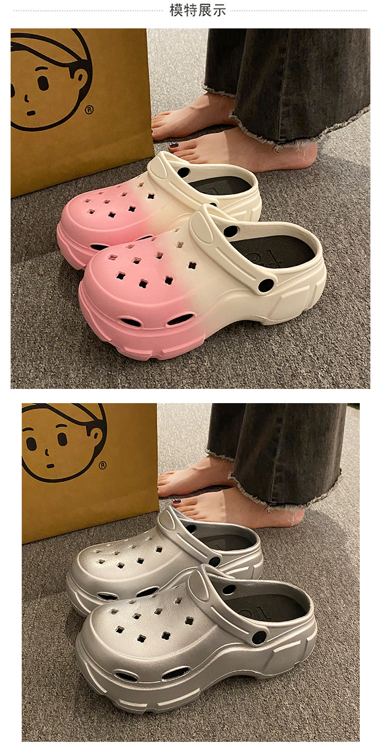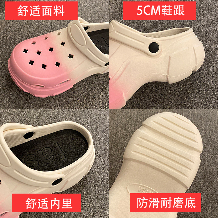 새로운 슈퍼 파이어 그라디언트 동굴 신발 두꺼운 단독 높이 증가 2024 여름 하이 엔드 디자인 슬리퍼 여성 여름 아우터웨어스토어 가기