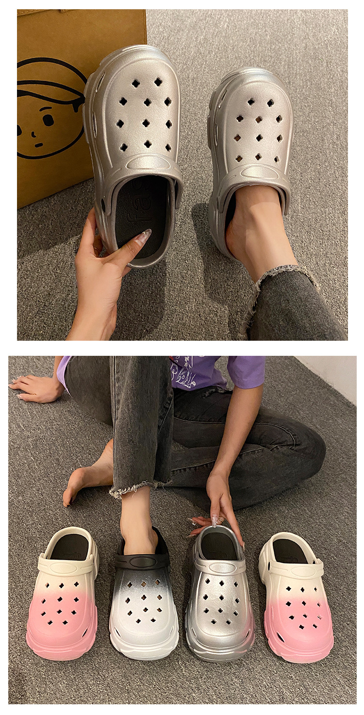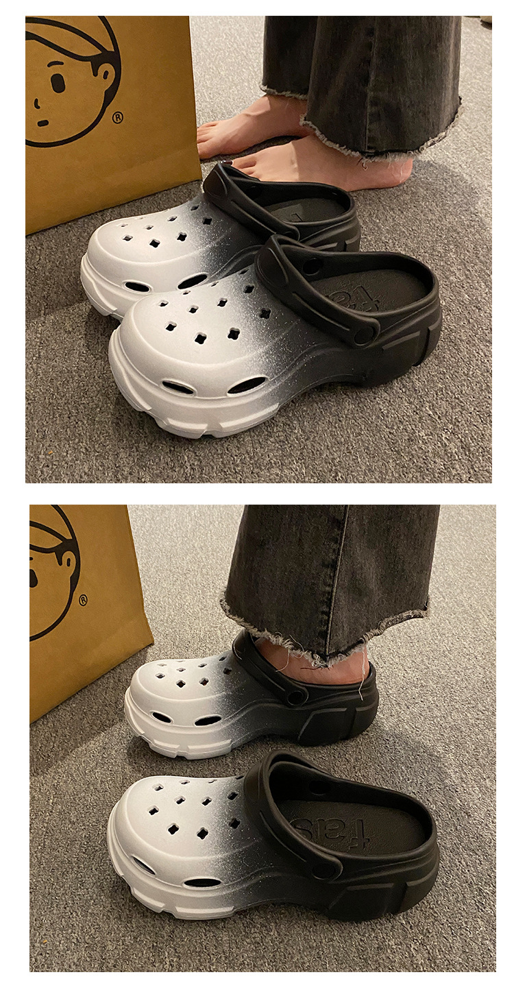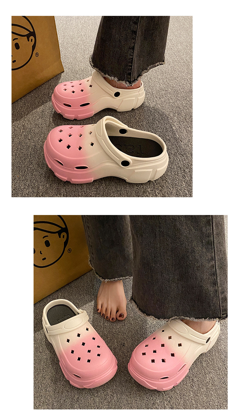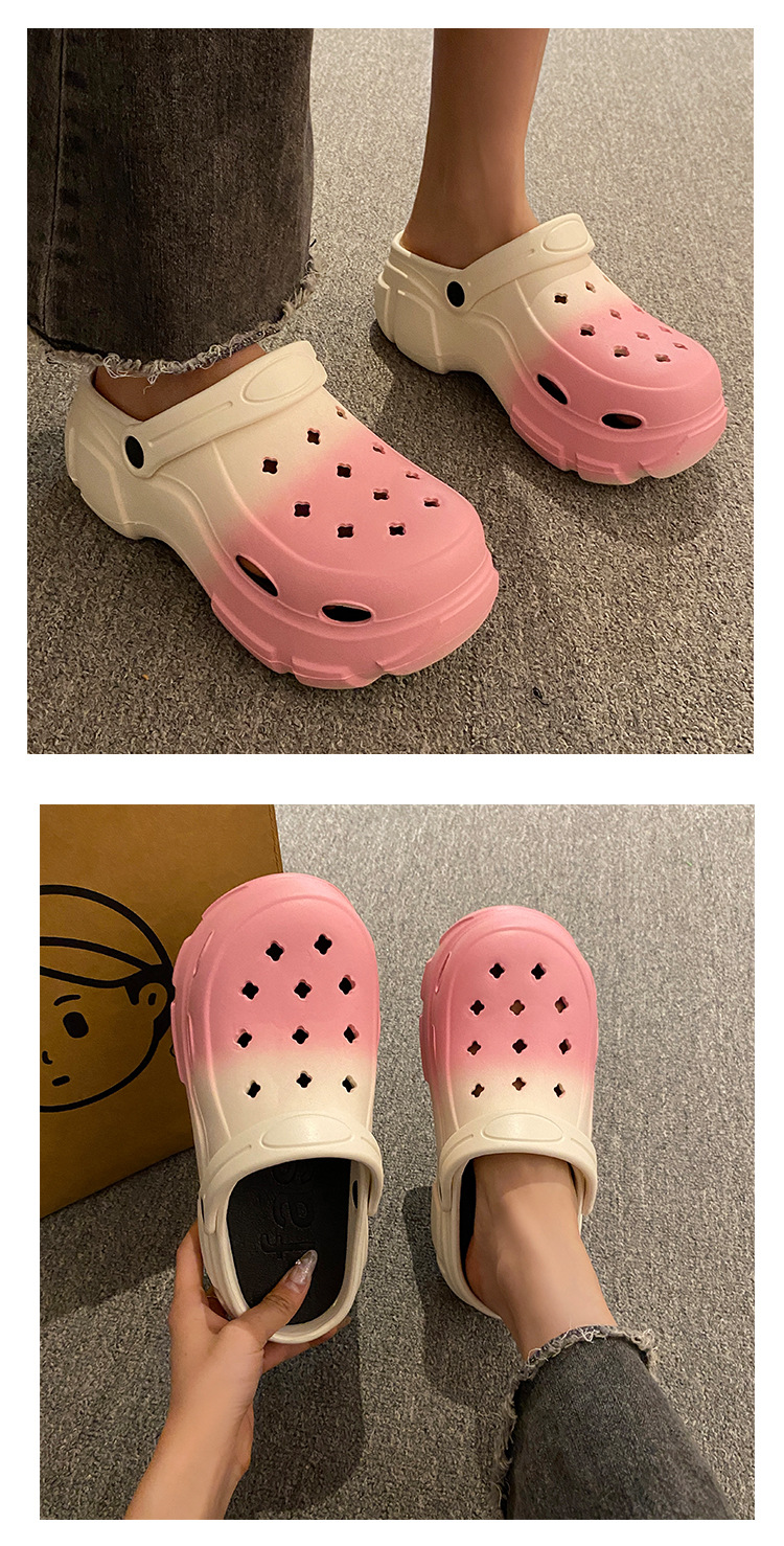 새로운 슈퍼 파이어 그라디언트 동굴 신발 두꺼운 단독 높이 증가 2024 여름 하이 엔드 디자인 슬리퍼 여성 여름 아우터웨어