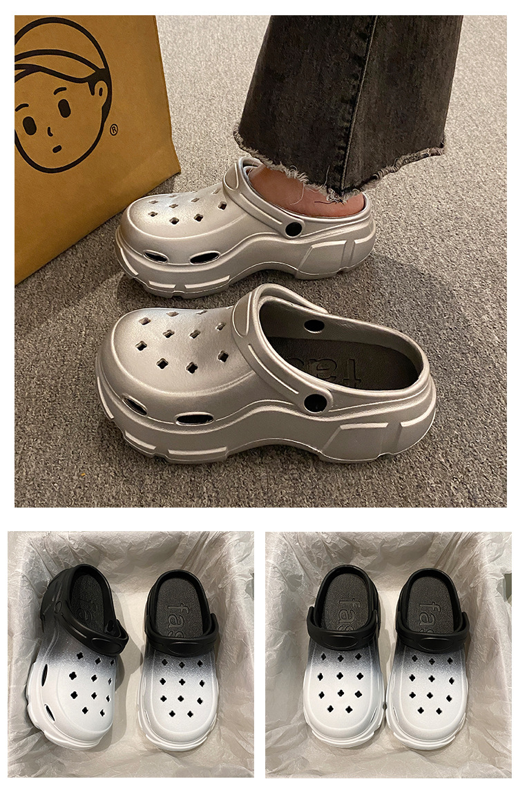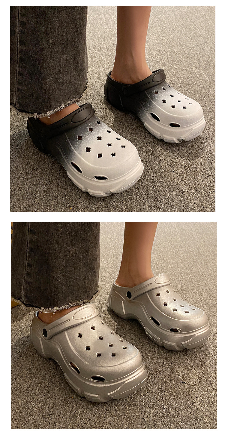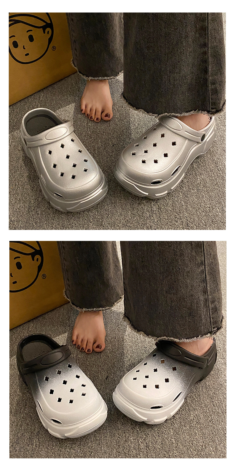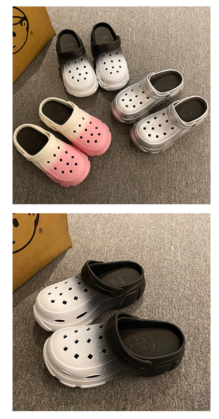 새로운 슈퍼 파이어 그라디언트 동굴 신발 두꺼운 단독 높이 증가 2024 여름 하이 엔드 디자인 슬리퍼 여성 여름 아우터웨어