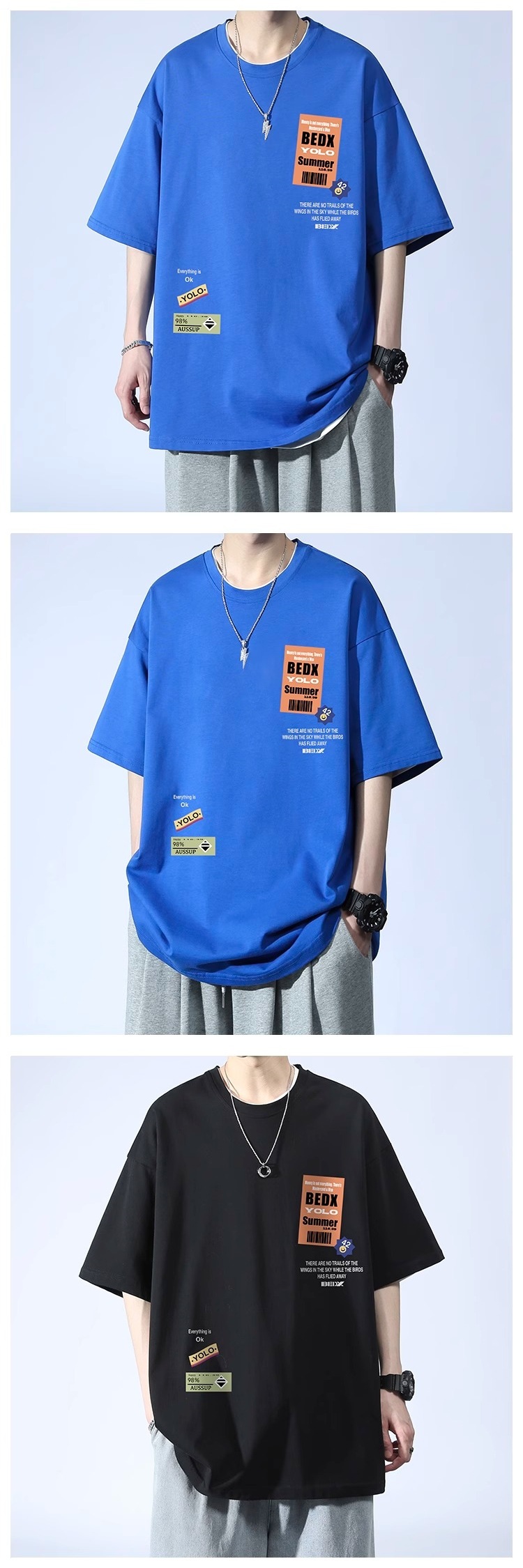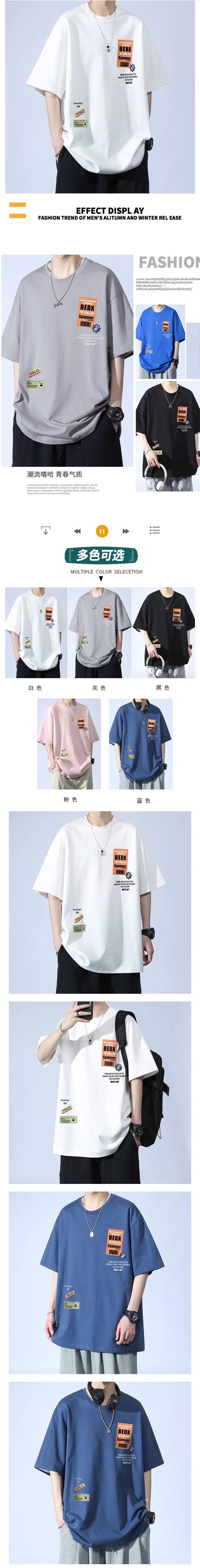 퓨어 코튼 반팔 티셔츠 남성 패션 브랜드 여름 중학생 잘 생긴 반소매 여름 고등학생 도매스토어 가기