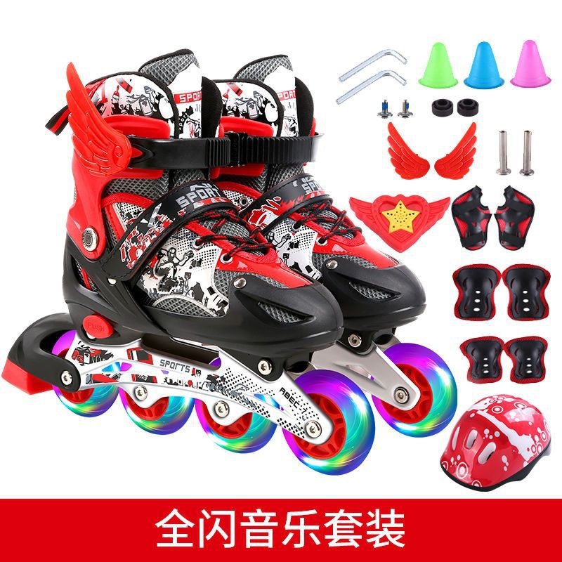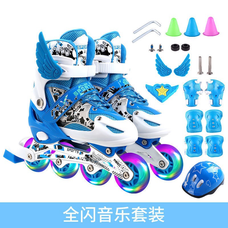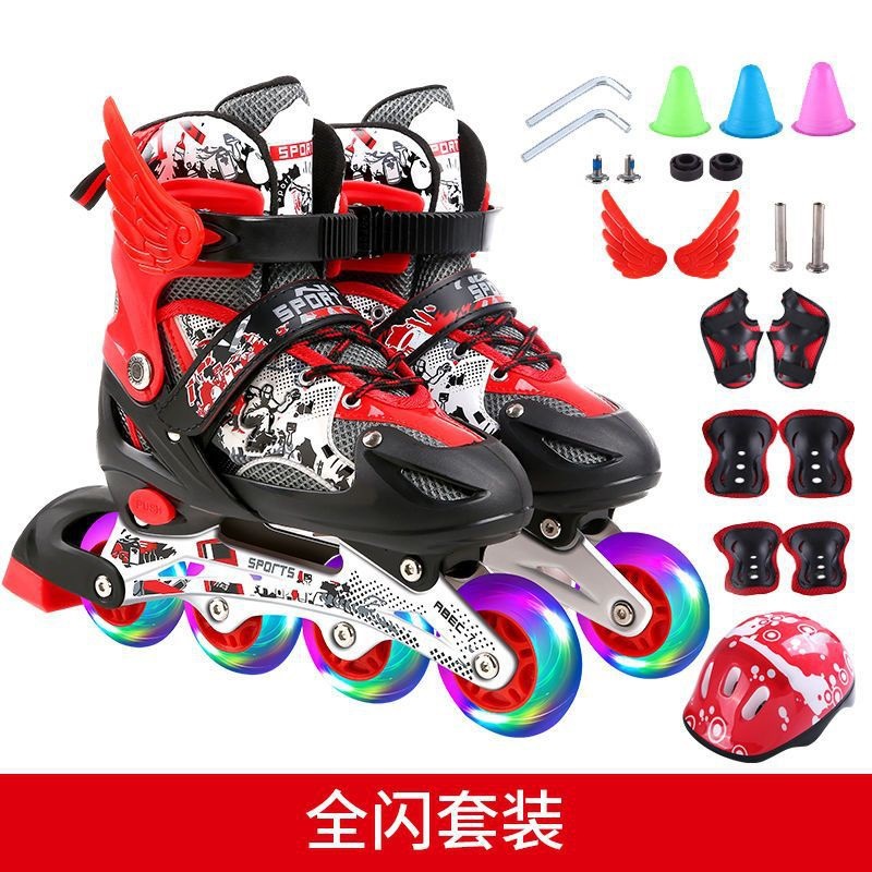 [무료 배송] [선호 shunfeng] 3-5-7-9-12 세 소년 소녀 롤러 스케이트 세트 어린이 롤러 스케이트