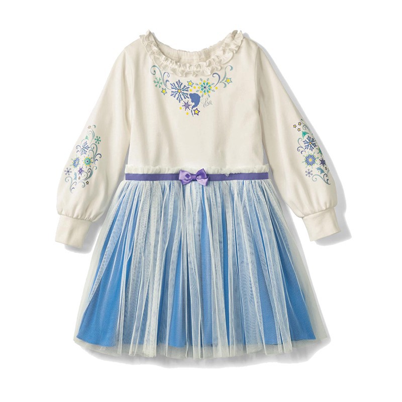 • 흰색 몸 파란색 드레스 긴 소매