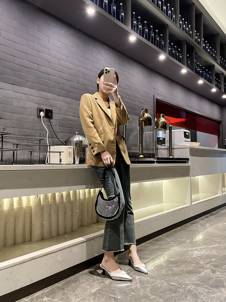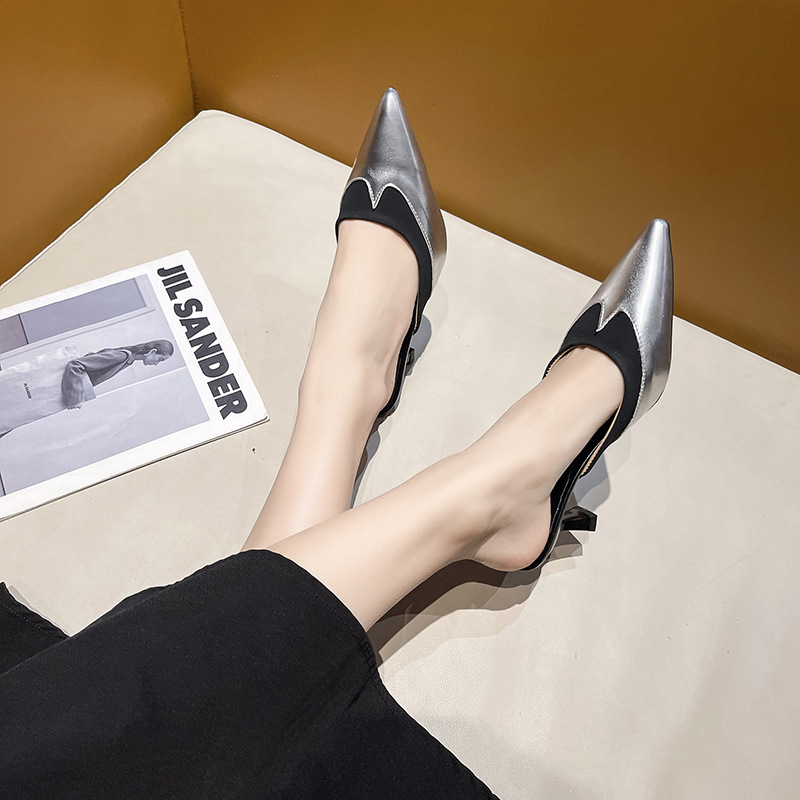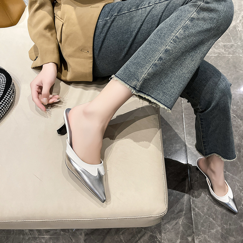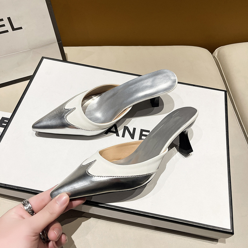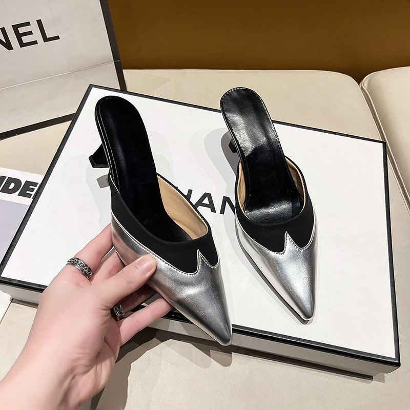 2025 새로운 유럽과 미국 스타일의 패션 포인트 컬러 매칭 하이힐 섹시한 기질 Baotou 하프 슬리퍼 틈새 기질스토어 가기
