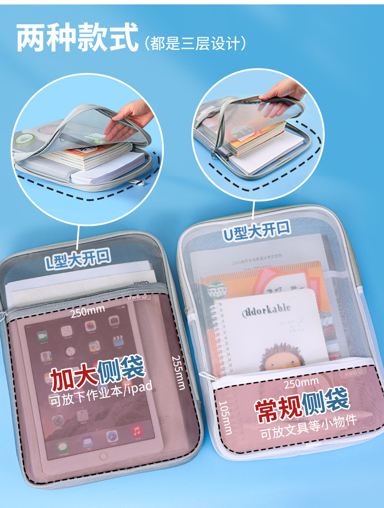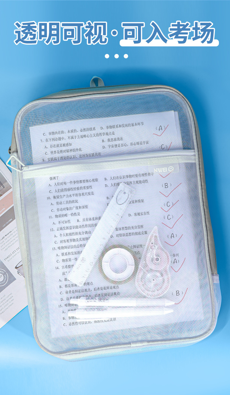 -L 형 주제 분류 가방 문서 가방 투명 테스트 종이 보관 가방 지퍼 휴대용 초등학생 책 가방