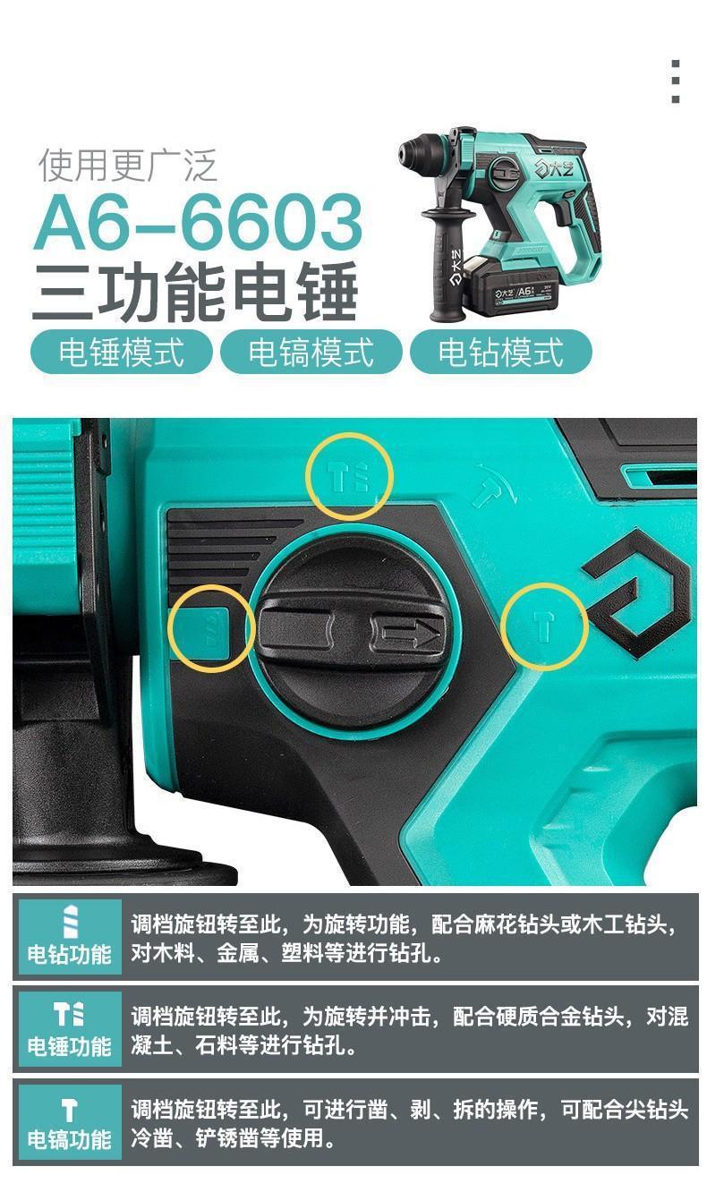 A6 시리즈 전기 해머 6601 충전식 충격 드릴 리튬 렌치 각도 그라인더 전원 도구 기타