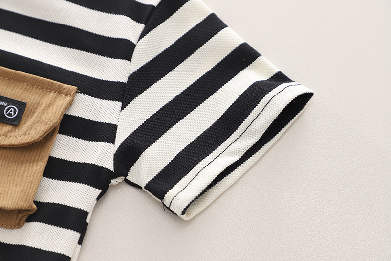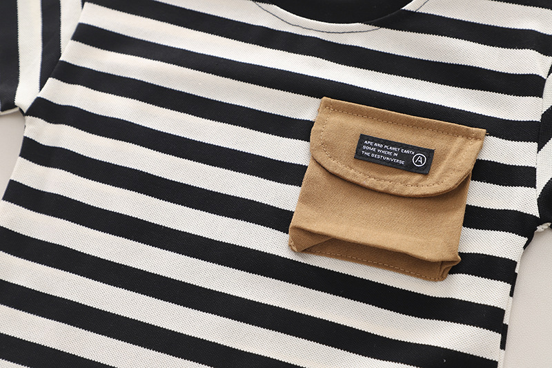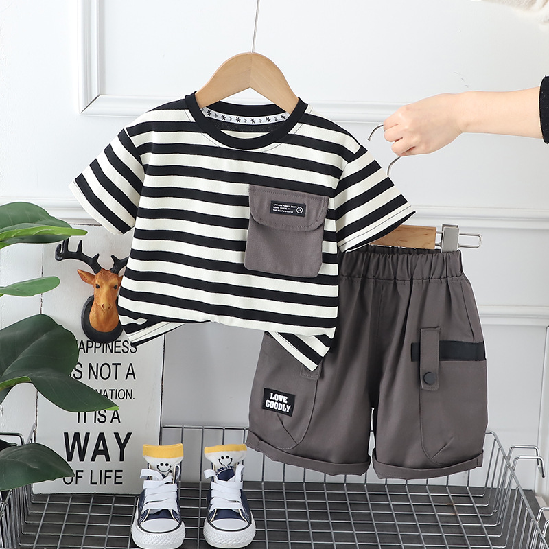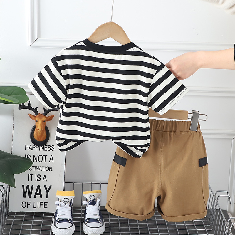 소년 여름 세트 2025 새로운 어린이 여름 줄무늬 티셔츠 반바지 중소형 어린이 반팔 도매 2 종 세트