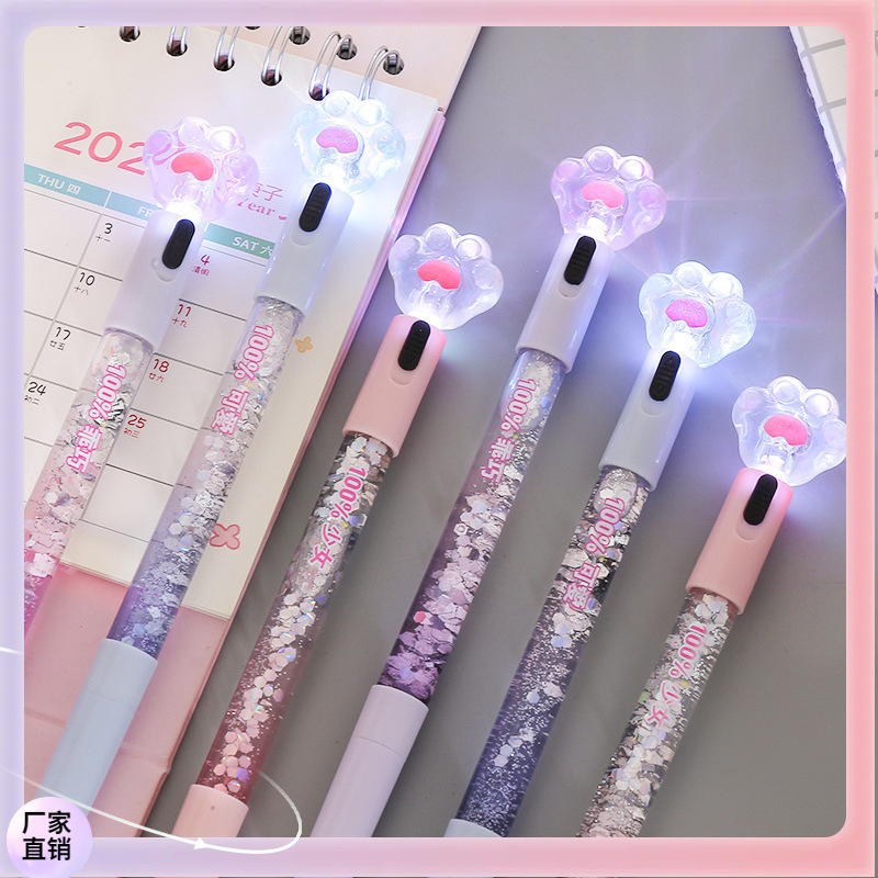 ✅간단한 소녀의 심장 동요 사운드 인터넷 연예인 빛나는 고양이의 발톱 퀵 샌드 젤 펜 귀여운 귀여운 Ins 학생 크리에이티브 워터 펜