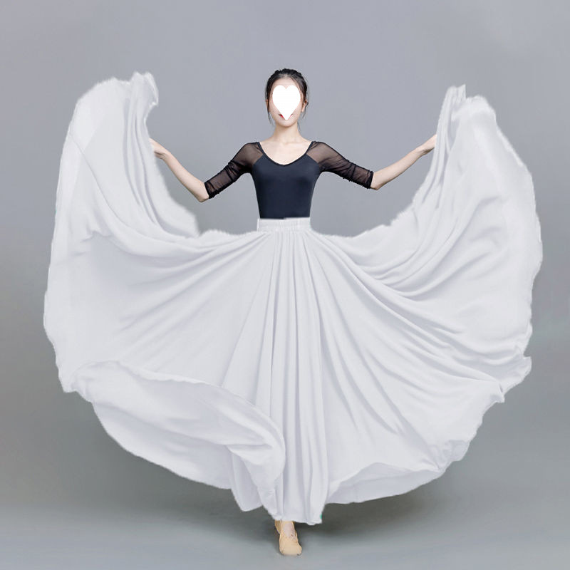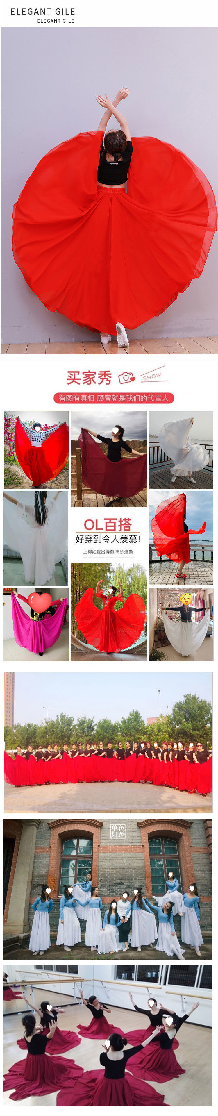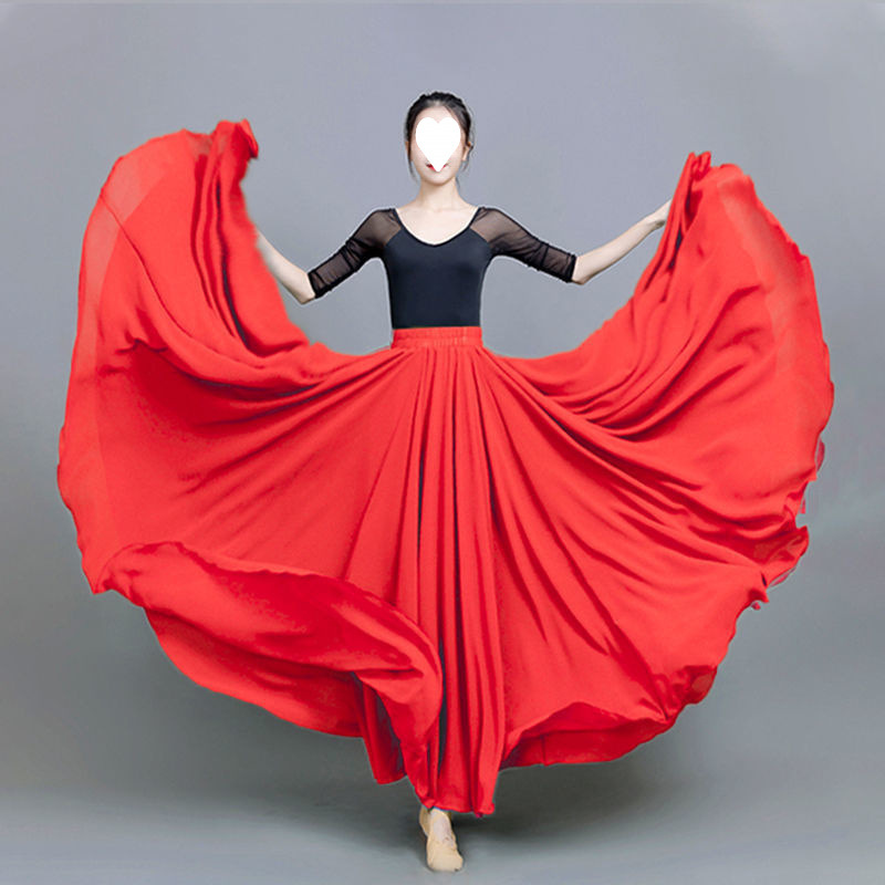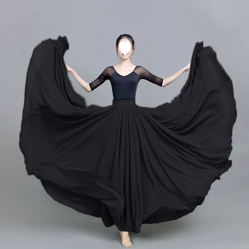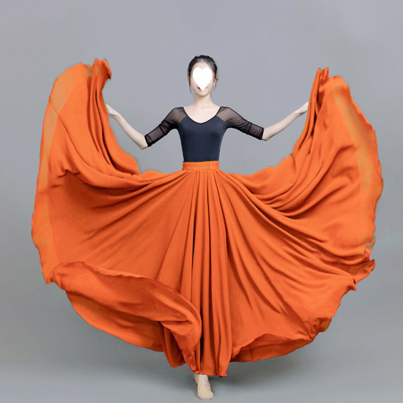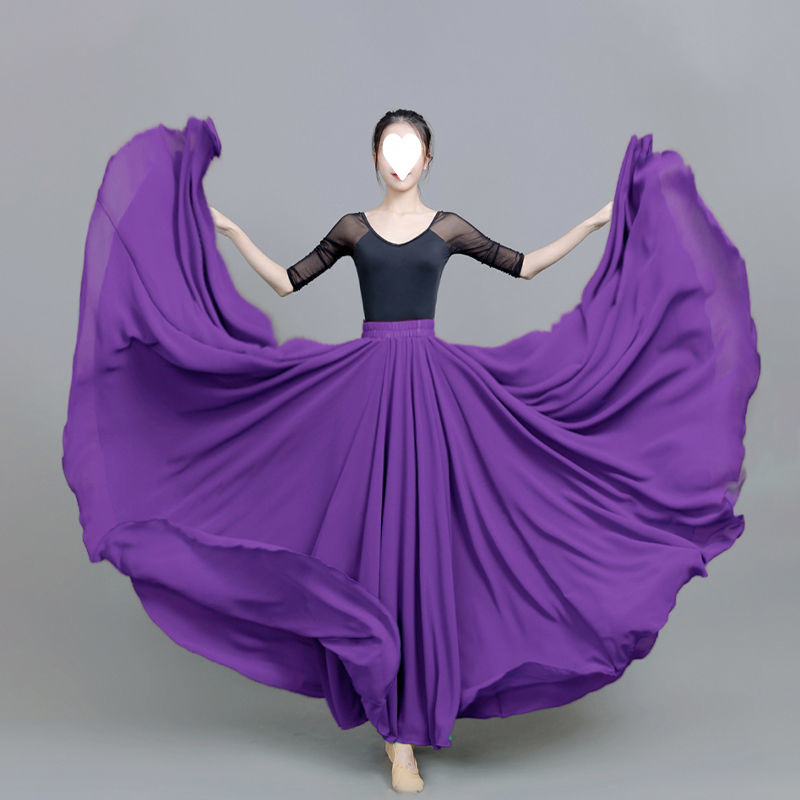 720 도 스윙 댄스 스커트 더블 레이어 쉬폰 스커트 하이 허리 슬리밍 포크 댄스 퍼플 스퀘어 댄스 스커트