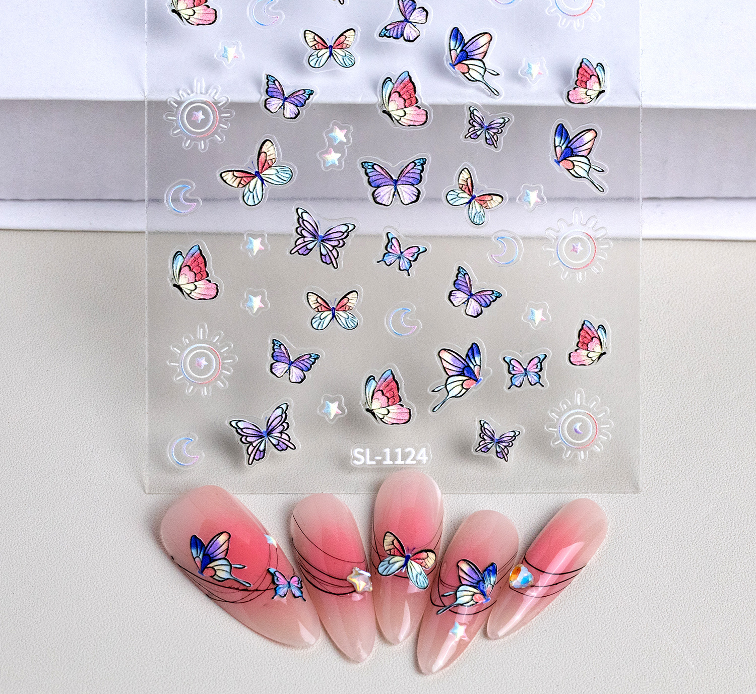 그물 빨간 달콤한 시원한 나비 네일 스티커 5D 구호 3 차원 창조적 인 나비 네일 아트 스티커 보석 SL스토어 가기
