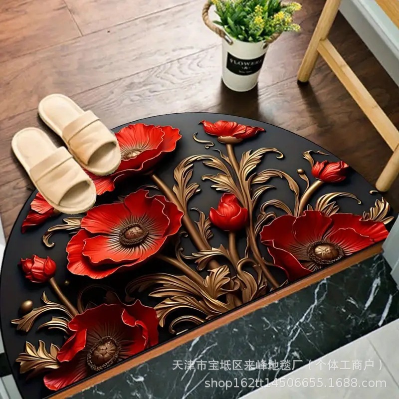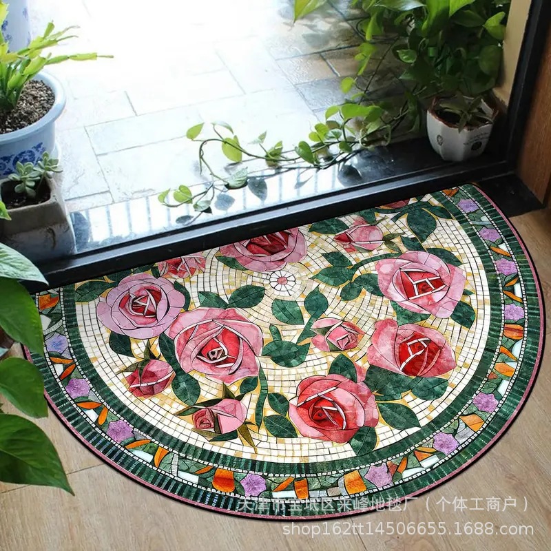 국경 간 아마존 반원 크리스탈 벨벳 바닥 매트 복고풍 돌 패턴 바닥 매트 청소 및 방진 환영 도어 매트