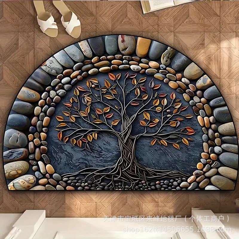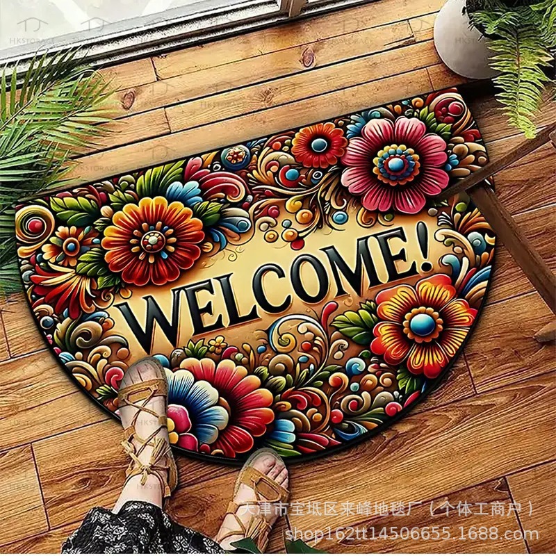 국경 간 아마존 반원 크리스탈 벨벳 바닥 매트 복고풍 돌 패턴 바닥 매트 청소 및 방진 환영 도어 매트스토어 가기