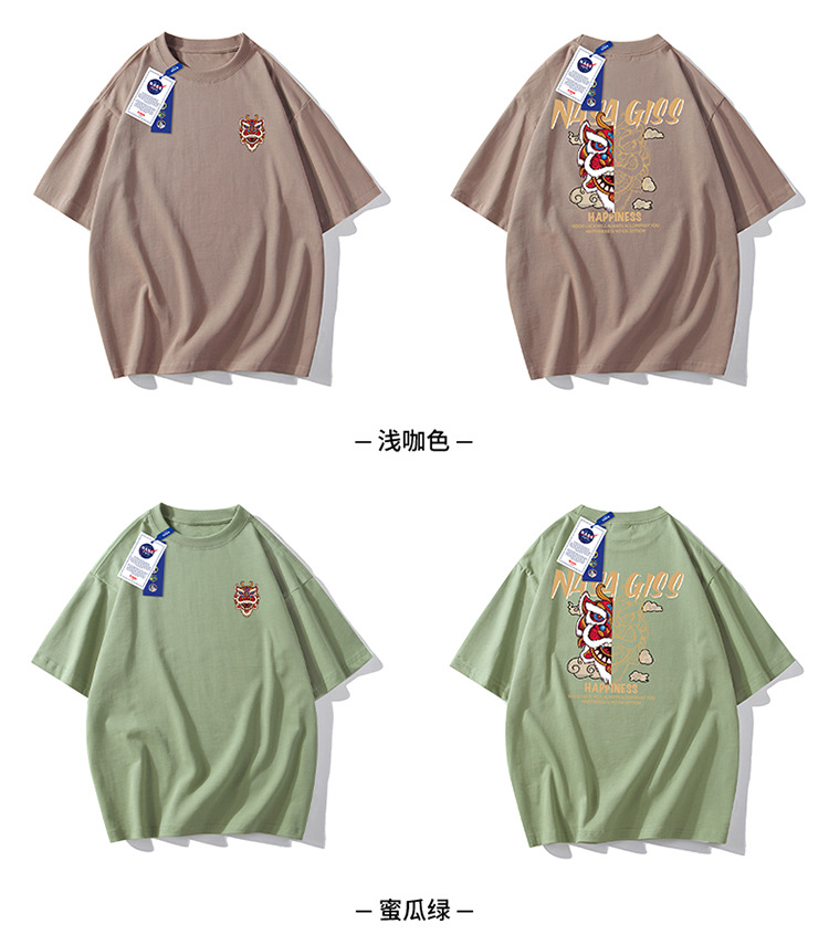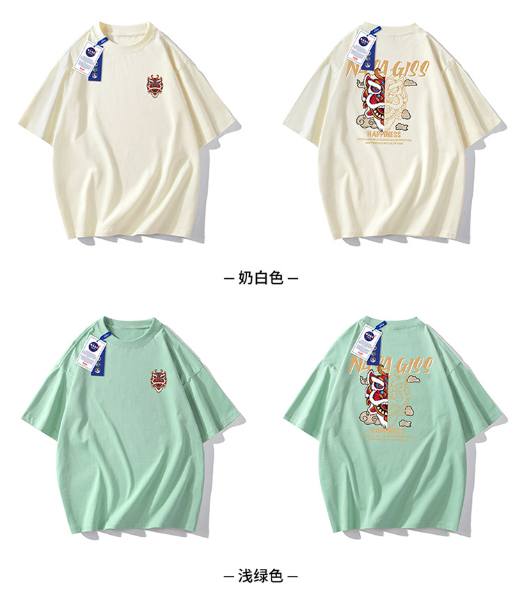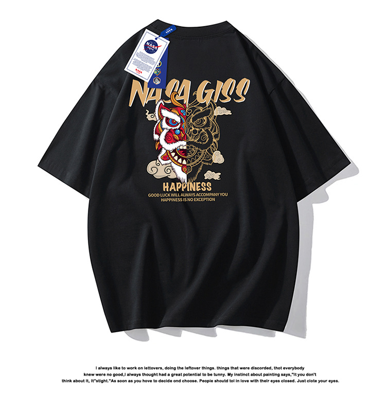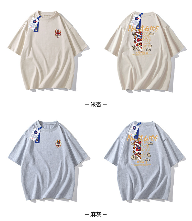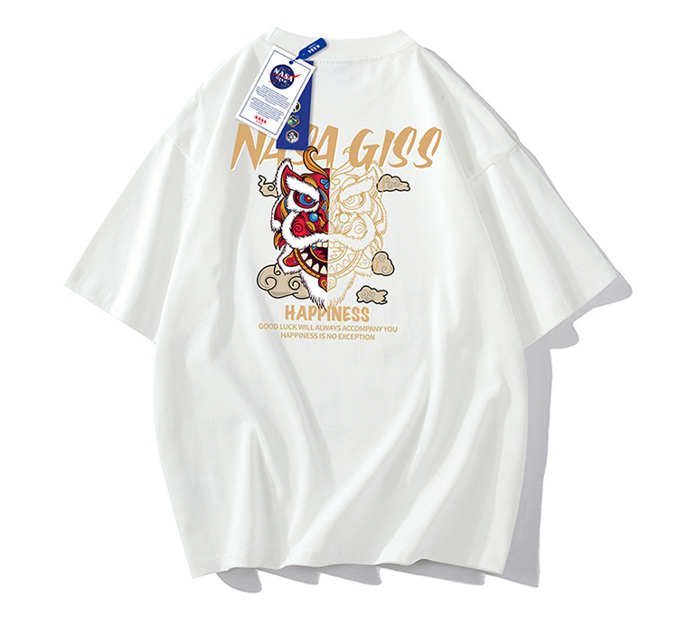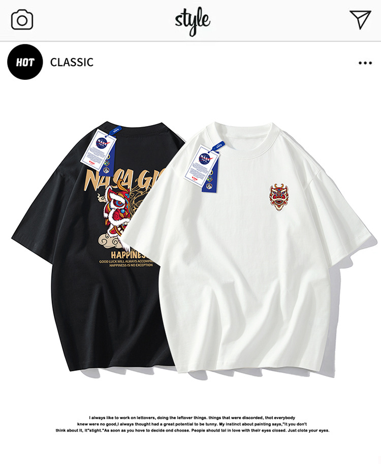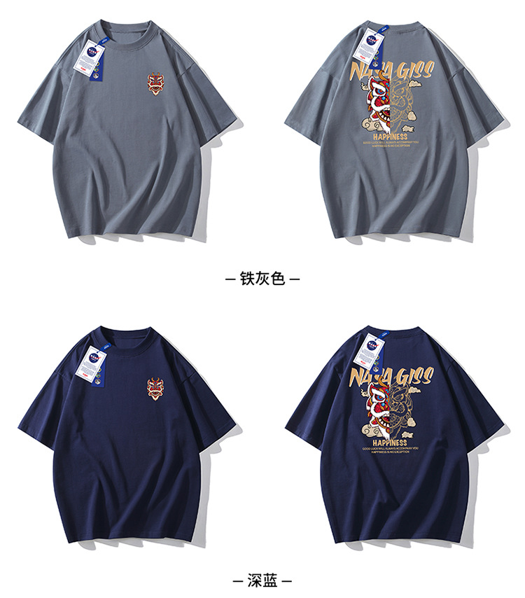 220g 블록버스터 여름 새로운 패션 인 맞춤형 프린트 반팔 티셔츠 남성용 느슨한 조커 남성 패션 셔츠 반팔스토어 가기