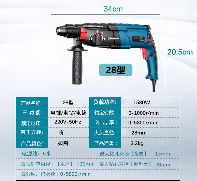 • 사각형 핸들 28형 더블 척 3가지 기능(정회전 및 역회전)_공장 표준 구성