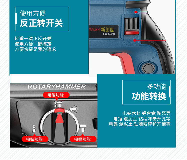 닥터의 새로운 제네시스 브랜드 다기능 광 충격 드릴 전기 해머 전기 선택 산업 등급 고출력 콘크리트