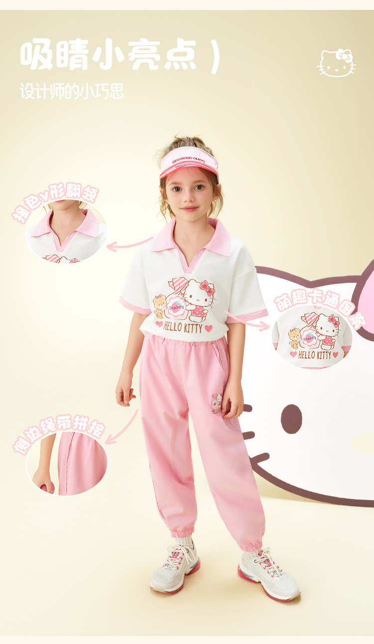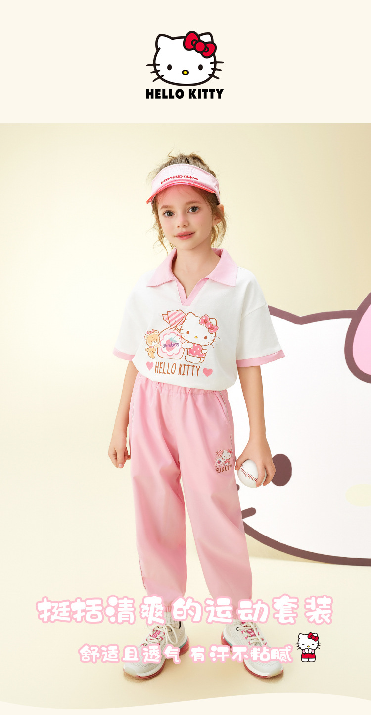 헬로 키티 헬로 키티 2024 여름 새로운 소녀 패션 캐주얼 스포츠 세트