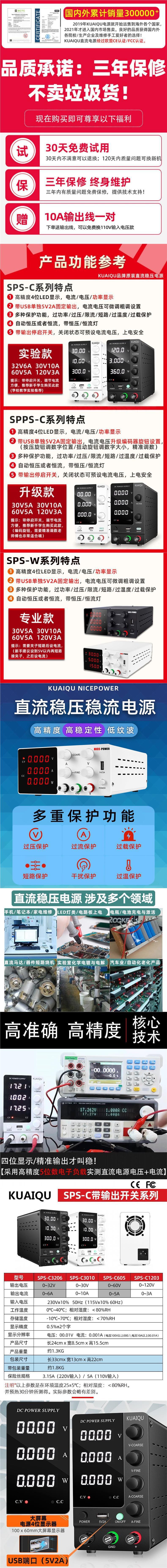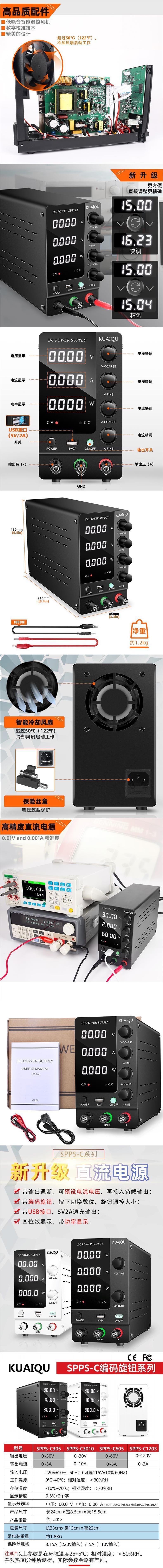 KUAIQU 조정 가능한 DC 조절 전원 공급 장치 고정밀 4 자리 디스플레이 전기 도금 전기 분해 유지 보수 전압 테스트