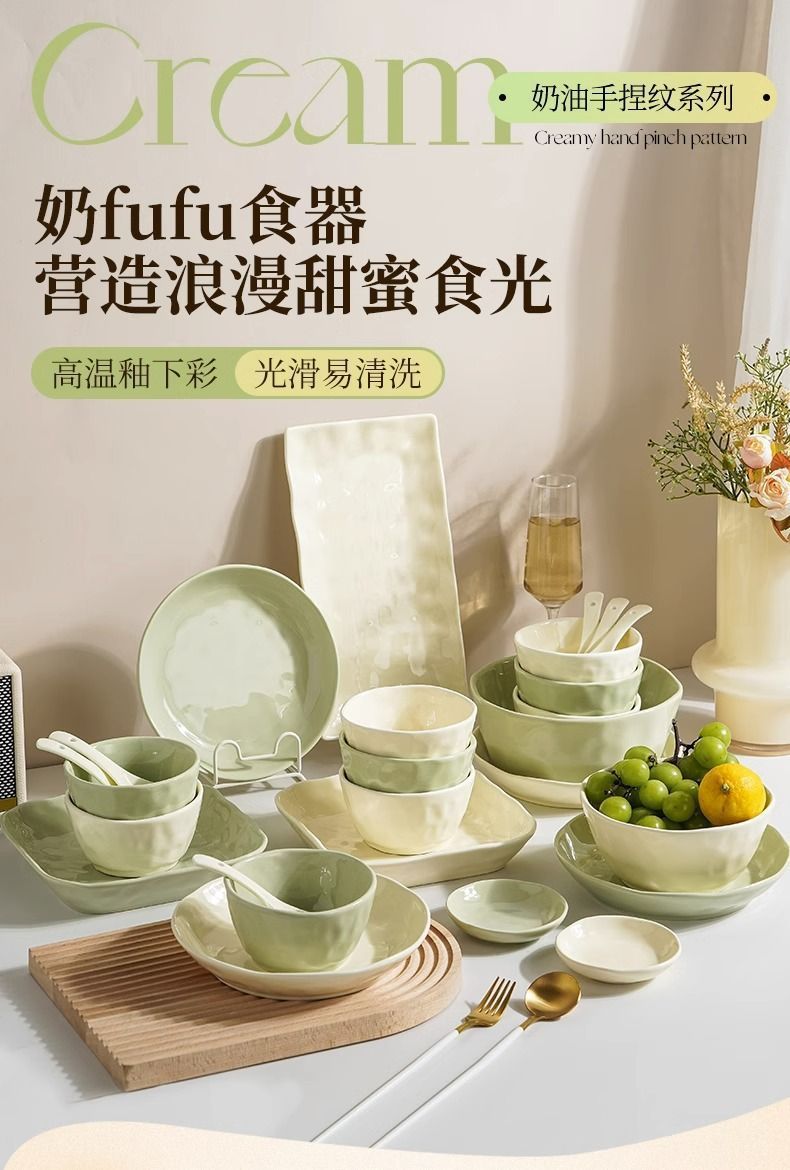 2024 새로운 크림색 요리 세트 가정용 식기 그릇 및 젓가락을위한 고급 세라믹 요리스토어 가기