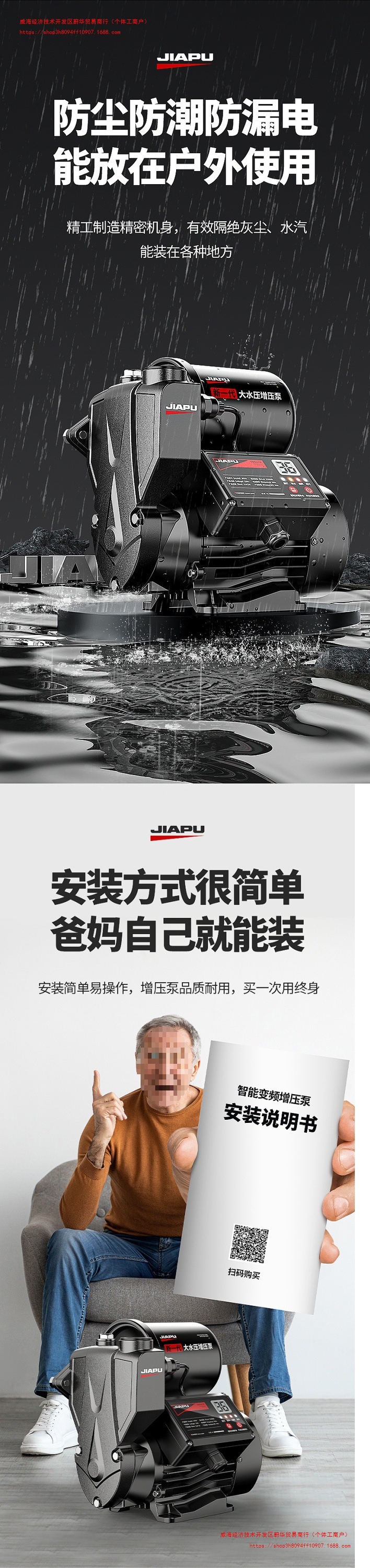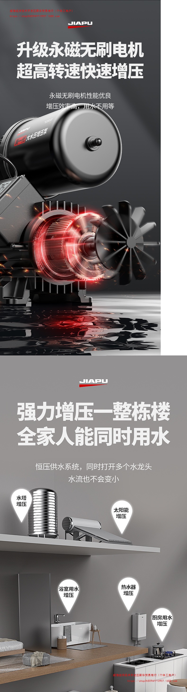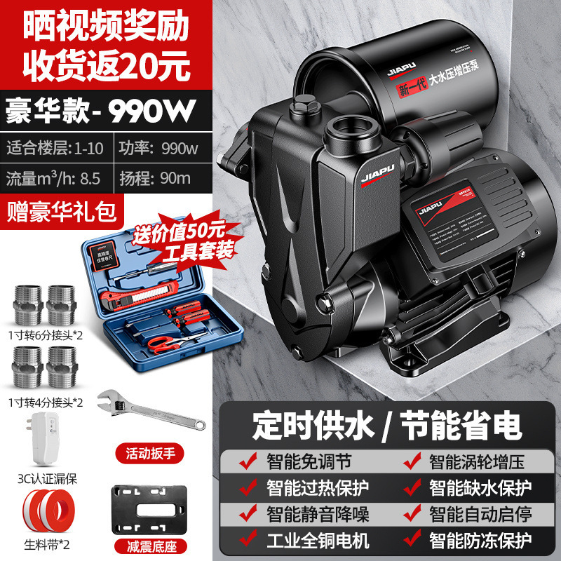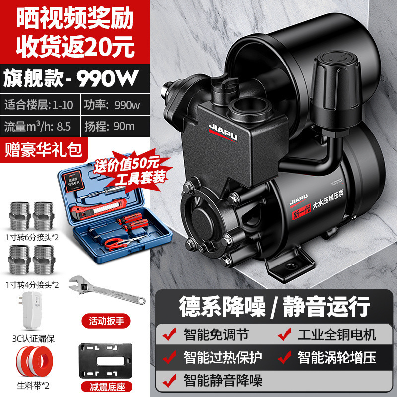 Jiapu 부스터 펌프 가정용 자동 220V 음소거 펌핑 자체 프라이밍 펌프 태양 수돗물 파이프 라인 부스터 펌프스토어 가기