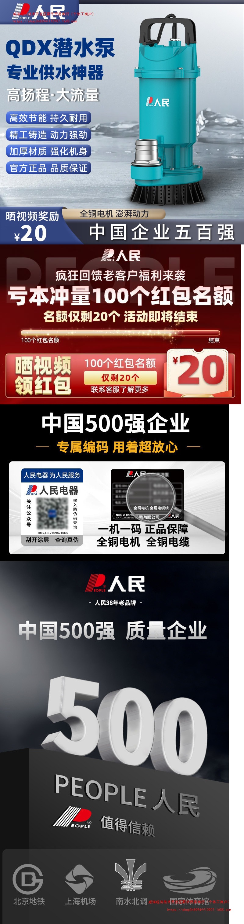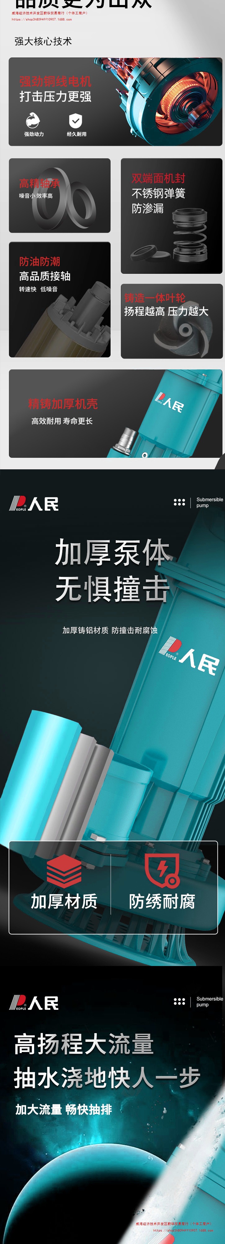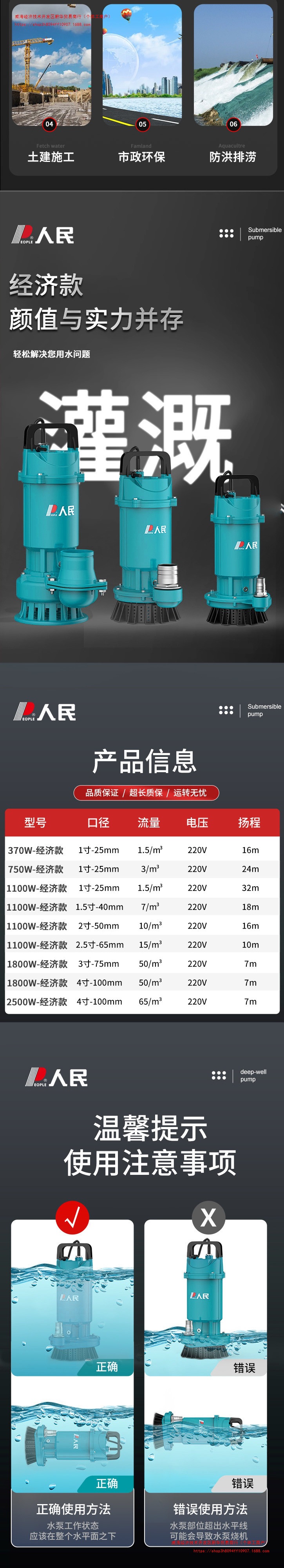 • [인민워터펌프] - 글로리컬렉션 - 7m 케이블 - 1800W [강력한 파워] 4인치 50톤 7m 헤드