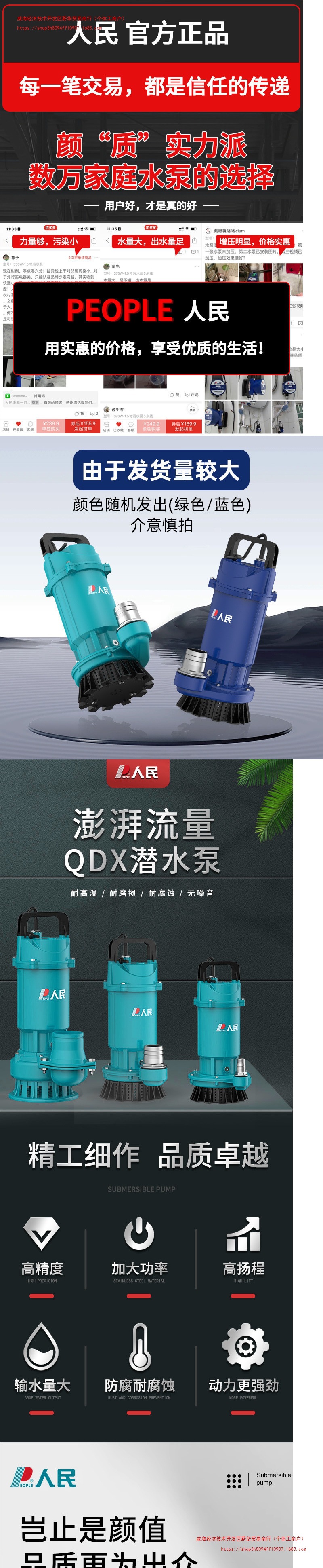사람의 전기 잠수 펌프 220V 맑은 물 펌프 큰 직경 가정용 펌프 고출력 농업 관개 하수 펌프