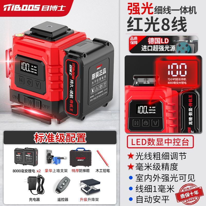[야외 빨간불] 붉은 빛 12 라인 레벨 계기 야외 강력한 레이저 적외선 플래시 자동 레벨링 워터 기기