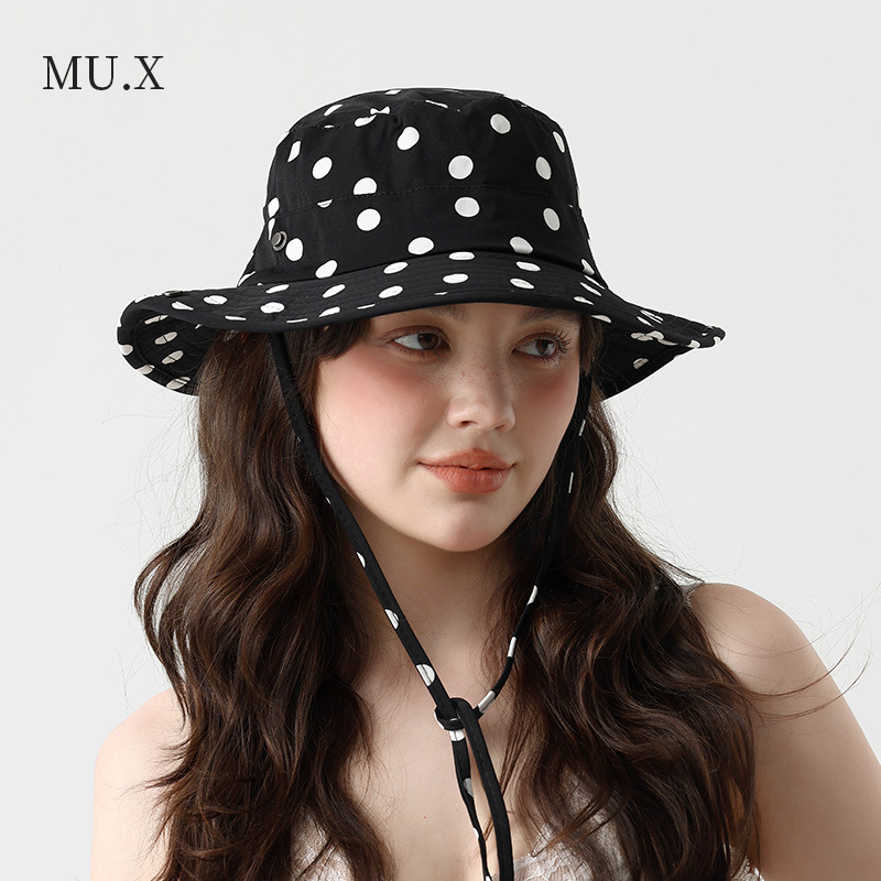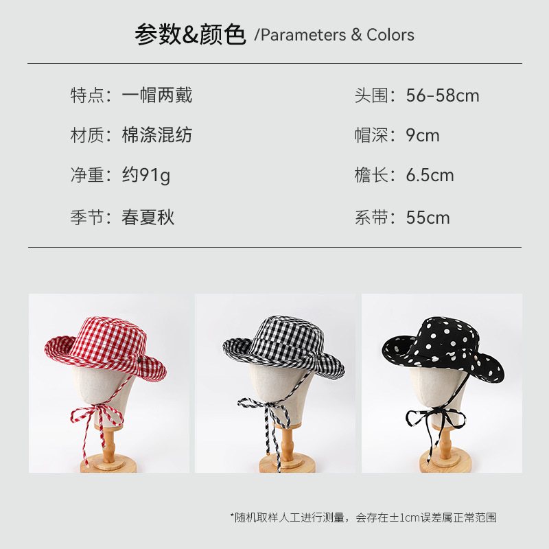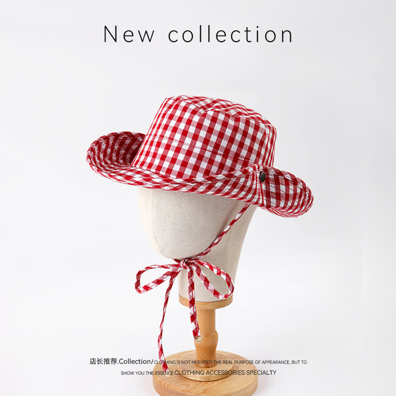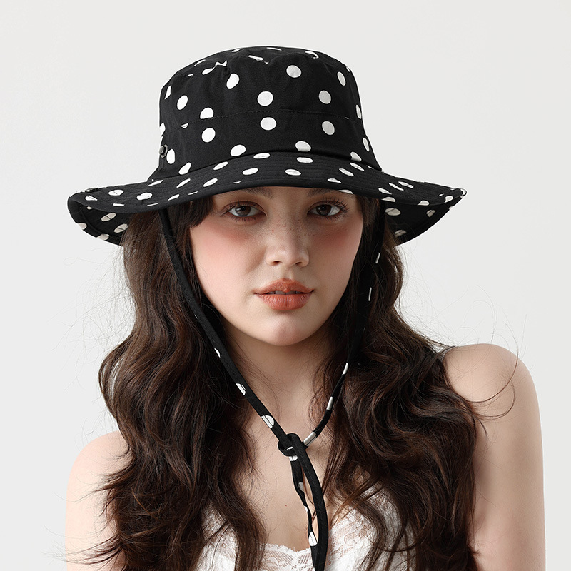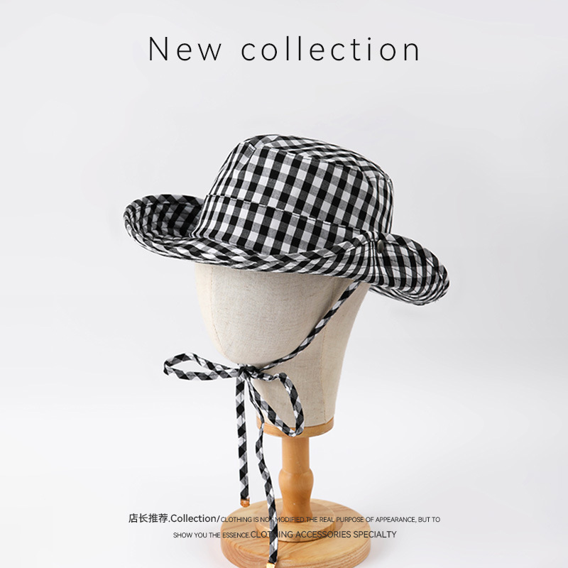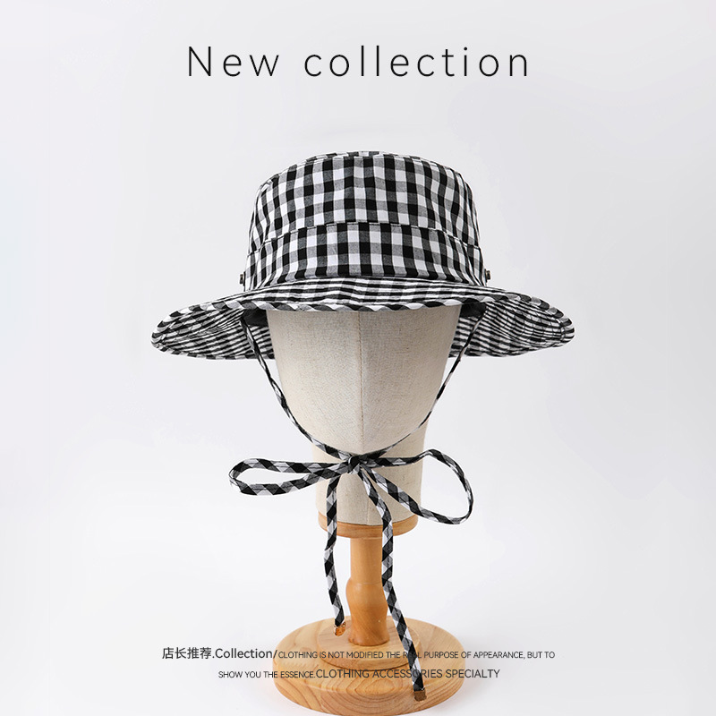 한국식 독특한 올매치 플레이드 닷 패션 레이스 업 어부 모자 여름 야외 레저 햇살 등반가 모자
