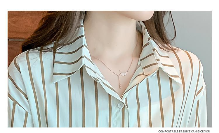 가을 새로운 스타일 폴로 칼라 긴 소매 줄무늬 쉬폰 셔츠 여성의 유행 연령 감소 느슨한 셔츠 최고 트렌디