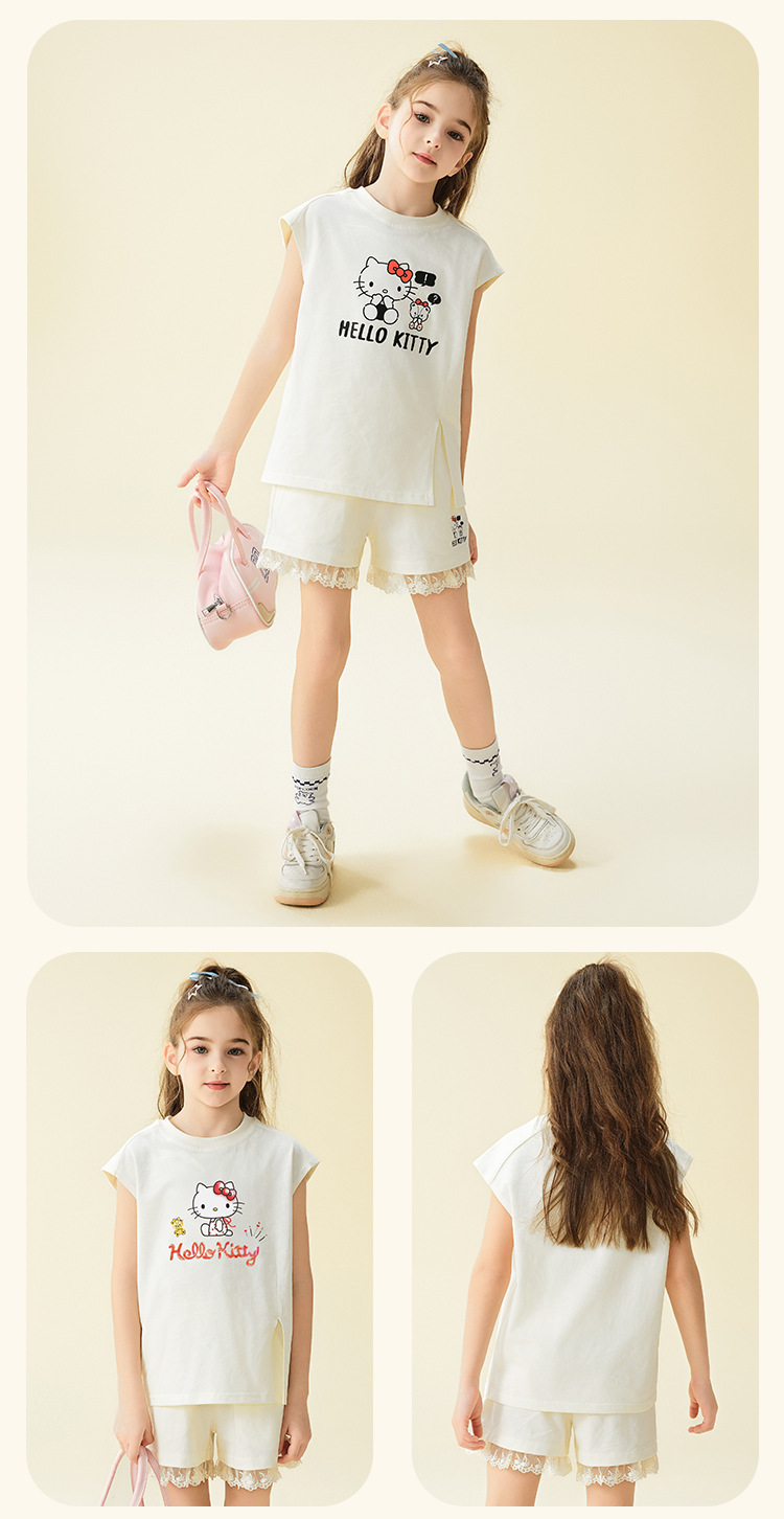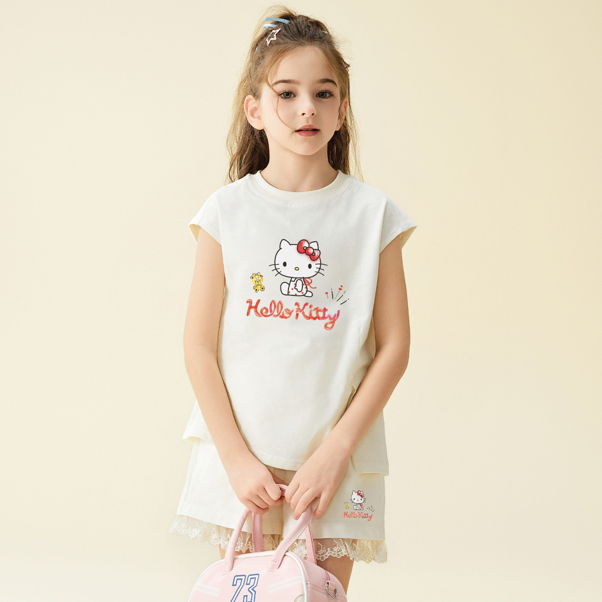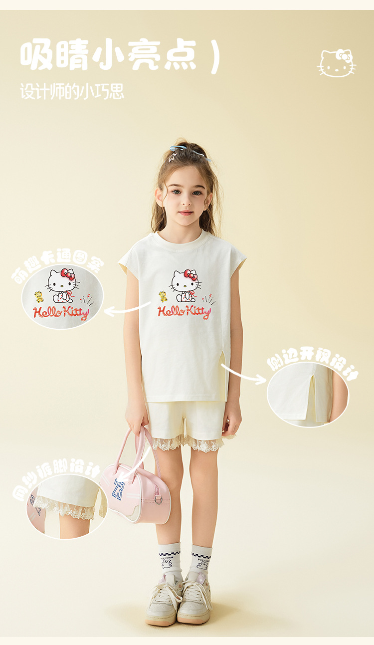 헬로 키티 헬로 키티 걸스 여름 투피스 세트 2024 새로운 면 민소매 어린이 세트스토어 가기