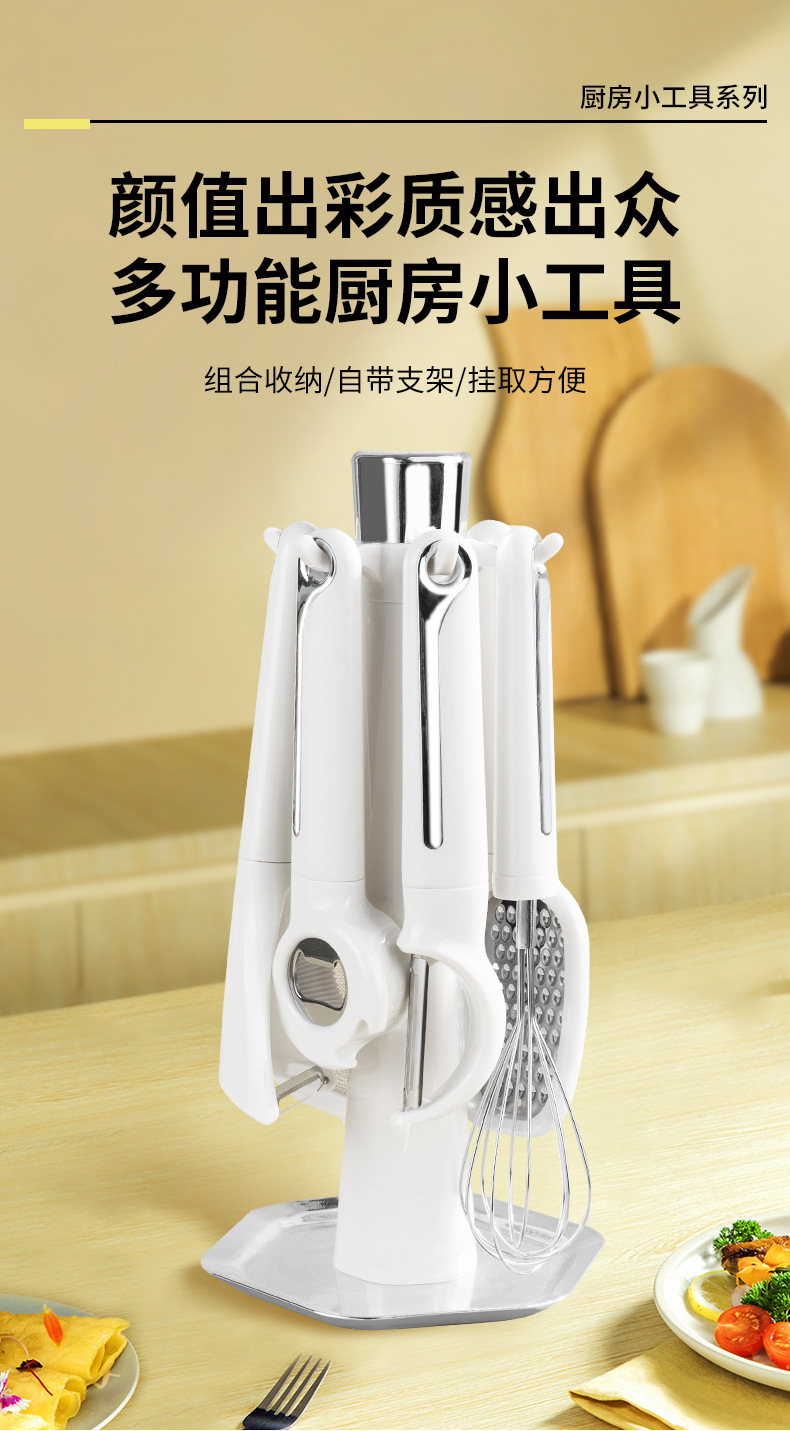 국경 간 주방 도구 두꺼운 손잡이 고온 저항 주방 도우미 7 피스 세트 가정용 멜론 플래너 브라켓으로 요리스토어 가기
